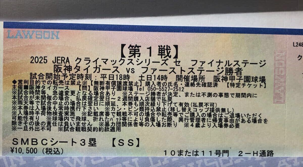 雨天中止場合は翌日に順延され、こちらのチケットもそのまま翌日開催されるCS第1戦のチケットとなります。ご了承の上ご検討よろしくお願い致します。