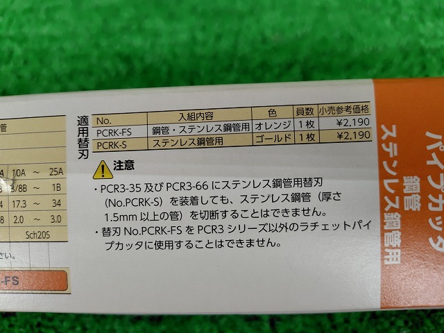 | 商品説明 | 【中古】KTC ラチェットパイプカッタ 鋼管・ステンレス鋼管用 No.PCR3-35 【状態】 使用感はほとんど見られず、きれいな状態です。 外箱に破れあり 【特徴】 ・切断能力15.88~35mm ・自動刃送り機構により一定の送り量(力)を保ち無理な力が加わりません。 ・ハンドル振り角度は7.5°で切断が可能です。狭い場所での切断に威力を発揮します。 ・ラチェット機構の採用により狭い場所でも楽に、早く切断することができます。 ・ボディーはアルミ製で軽く、表面処理は耐摩耗性に優れたクロムメッキ仕上げです。 ・刃は専用薄刃なので、切断面がきれいです。 ・刃は適用管によって替刃が色分けされていますのでひと目でわかります。 【仕様】 ・全長(mm):240 ・切断能力(mm):15.88~35 ・最大肉厚(mm)ステンレス:3 ・最大肉厚(mm)鋼:3.2 ・切断能力(インチ):1/2~1 1/4 ・標準替刃:PCRK-FS 【ご注意】 ※中古品につき、使用感や傷、汚れ等がございます。完璧な状態をお求めの方、神経質な方はご購入をお控えください。 ※動作確認済みですが、中古品であることをご理解の上ご購入ください。 ※写真に写っているものが全てです。 ※リサイクル資材を使用しての梱包となります。 ※※掲載商品は店頭にも陳列していますので、売り切れの場合は御容赦下さい。※※ 【詐欺サイトにご注意ください】 こちらの商品はヤフーオークションのみ出品中です。ヤフーオークション以外の販売サイトは悪質な詐欺サイトです。偽サイトをご利用になった場合、入力した個人情報が悪用されたり、代金をお支払いされましても商品が送られてこない等の詐欺被害につながる恐れがございます。お客様におかれましては、偽サイトへのアクセスや、個人情報の入力、ご注文、ご決済をされないようご注意ください。万が一被害に遭われてしまった場合、誠に申し訳ございませんが、当社では被害に関する対応はいたしかねますので予めご了承ください。 【ゆうパック 全国800円 (沖縄:1400円)】 【ヤマト運輸 全国1100円 (沖縄:1600円)】 どちらか一方を落札後、ご選択頂きます。 | 出品店舗 | スマイルサンタ 松本店 |