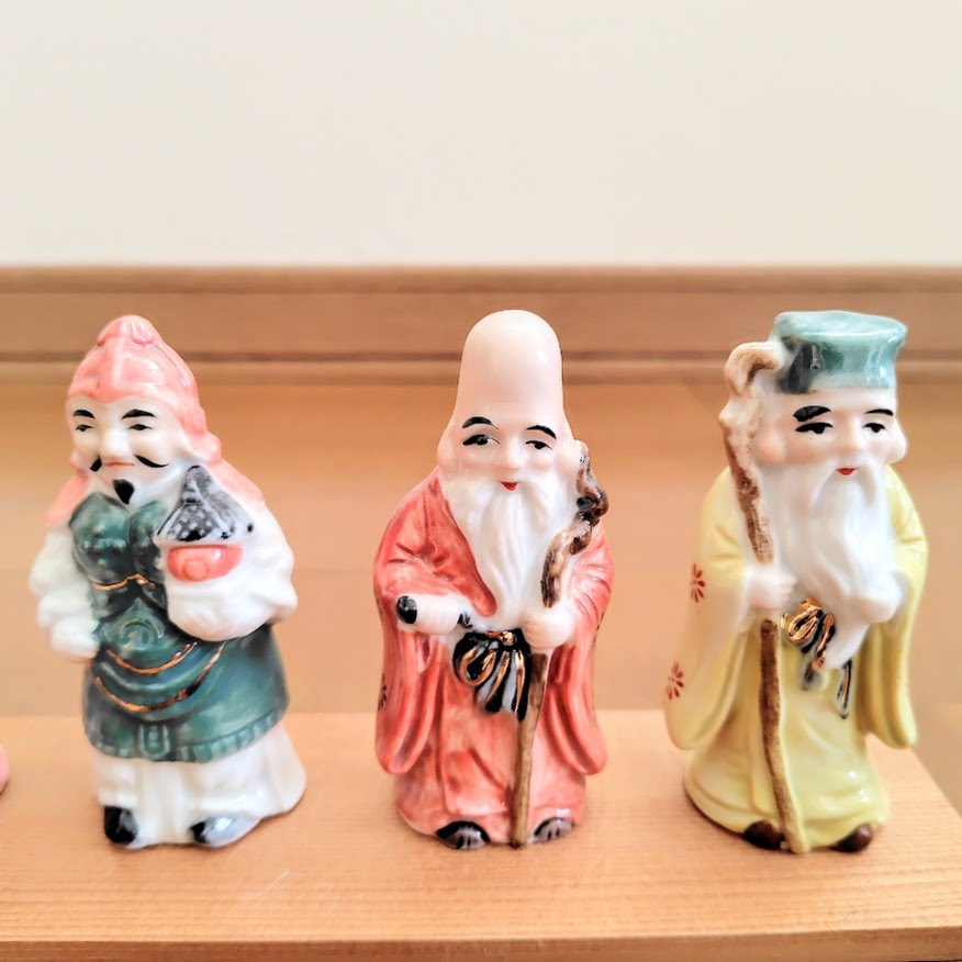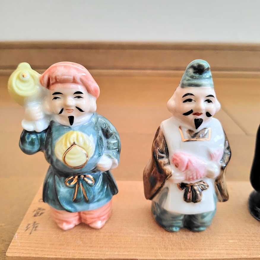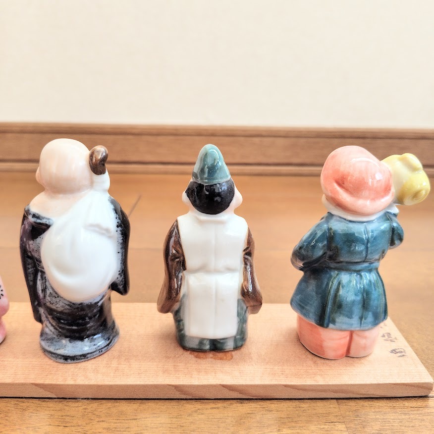 ・20年ほど前に和歌山県・南紀白浜で購入し、室内の棚で保管しておりました。和歌山は「七福神めぐり」が有名で、縁起の良い品です。優しい色合いが魅力的な、割れ・欠け・汚れ・色褪せがない美品で、木の台座に書かれた「西宝作」のサインも鮮明です。