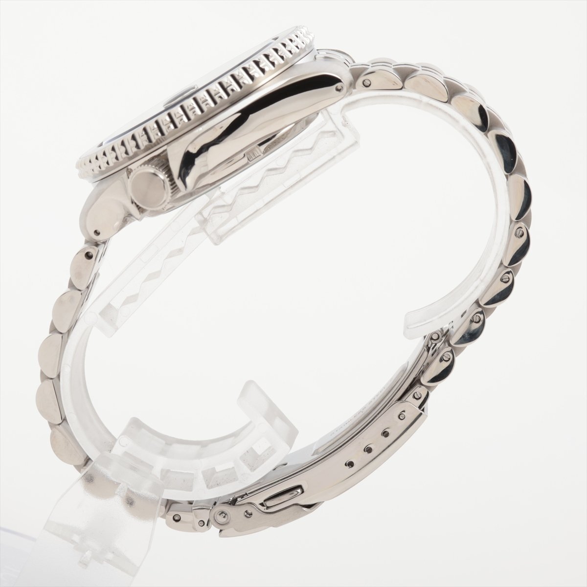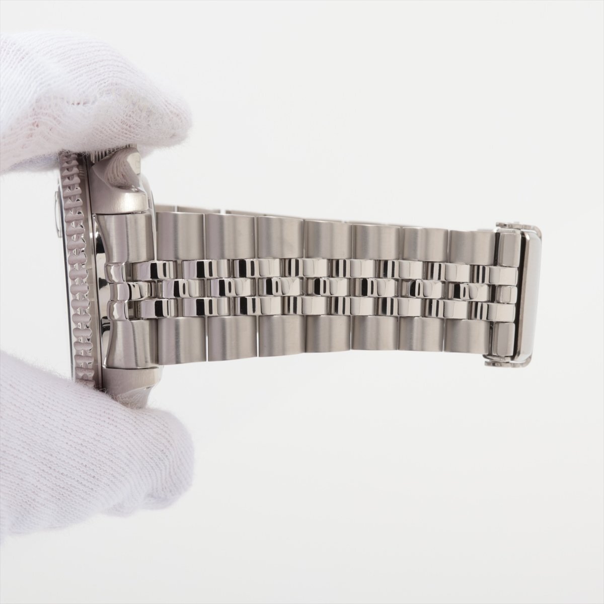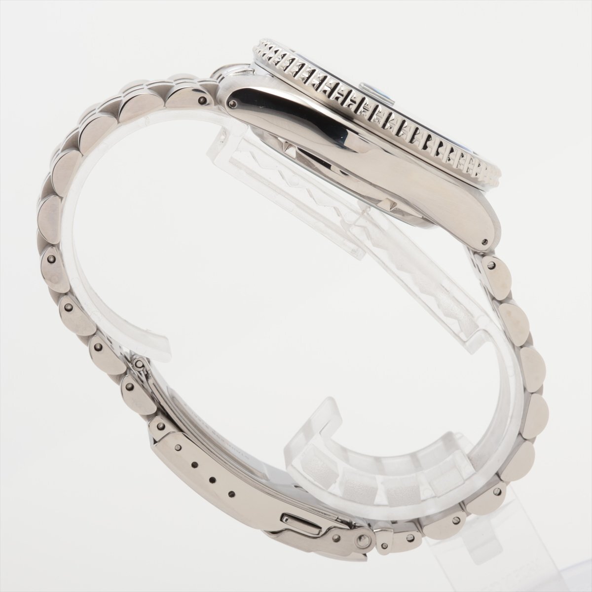 ベゼルはブラックと、ポリッシュされたメタリックブルーの2色。「バットマン」とも呼ばれる配色の、非常にクールな印象のお品物です。