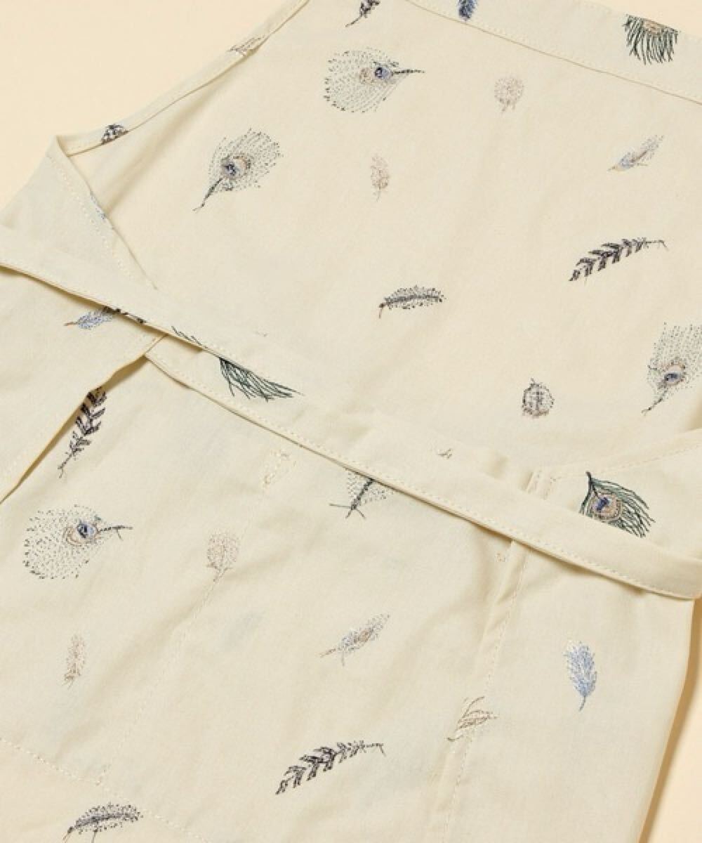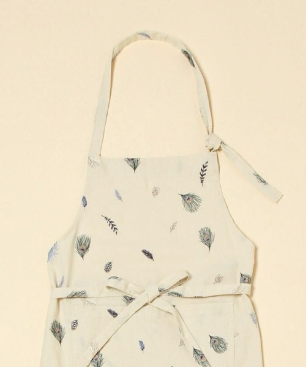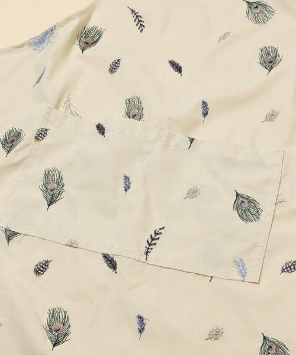 niko and... ニコアンド KEITA MARUYAMA ケイタ マルヤマ コラボ 羽根 刺繍入り エプロン (ライトグリーン) 孔雀 鳥 クジャク