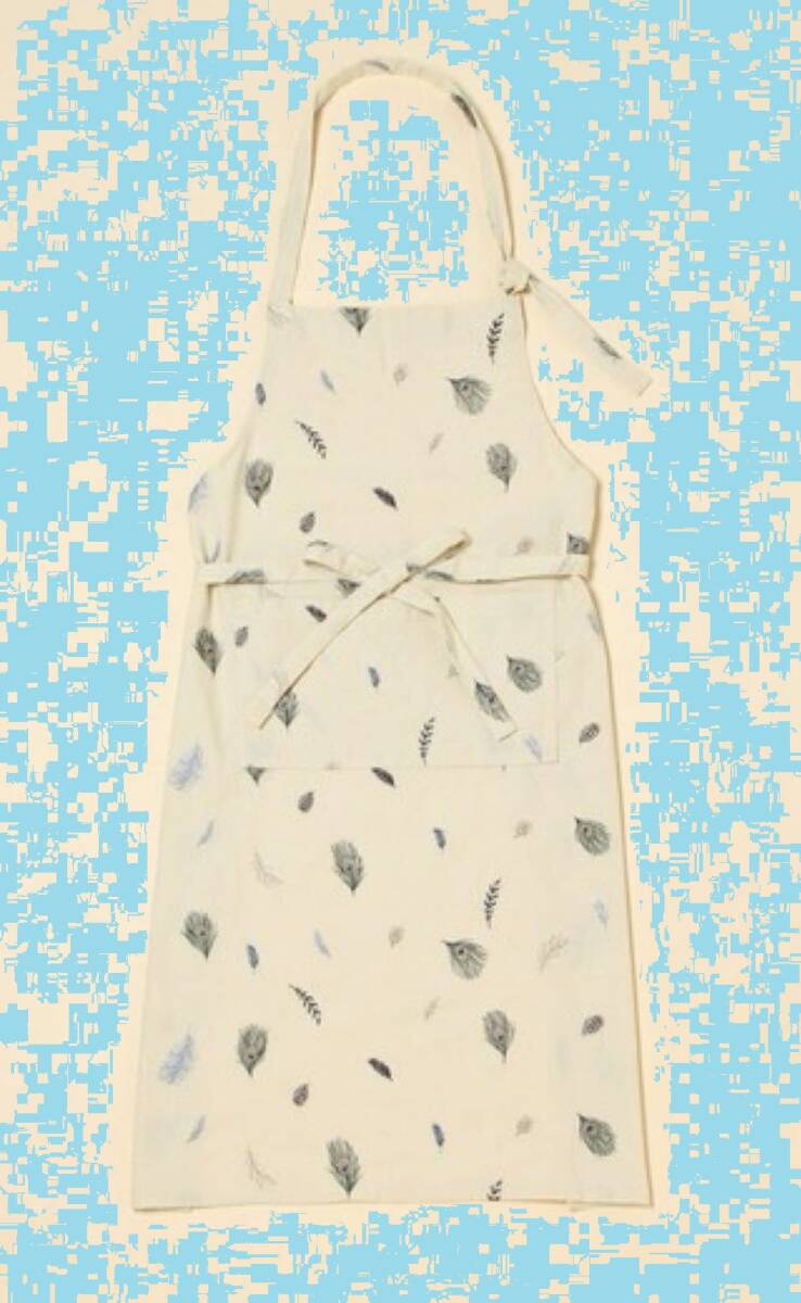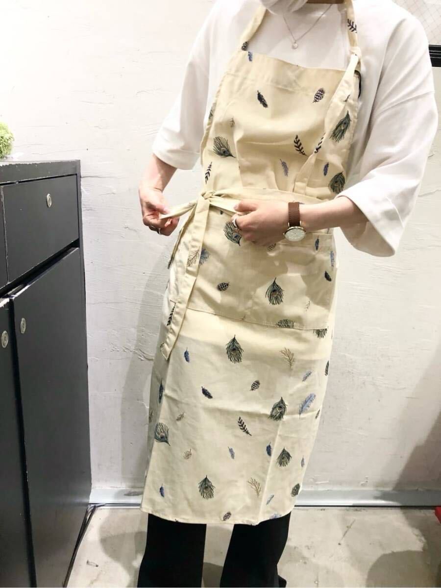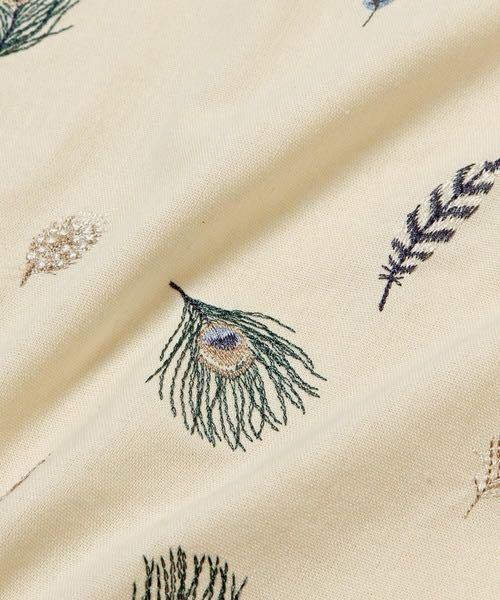 niko and... ニコアンド KEITA MARUYAMA ケイタ マルヤマ コラボ 羽根 刺繍入り エプロン (ライトグリーン) 孔雀 鳥 クジャク