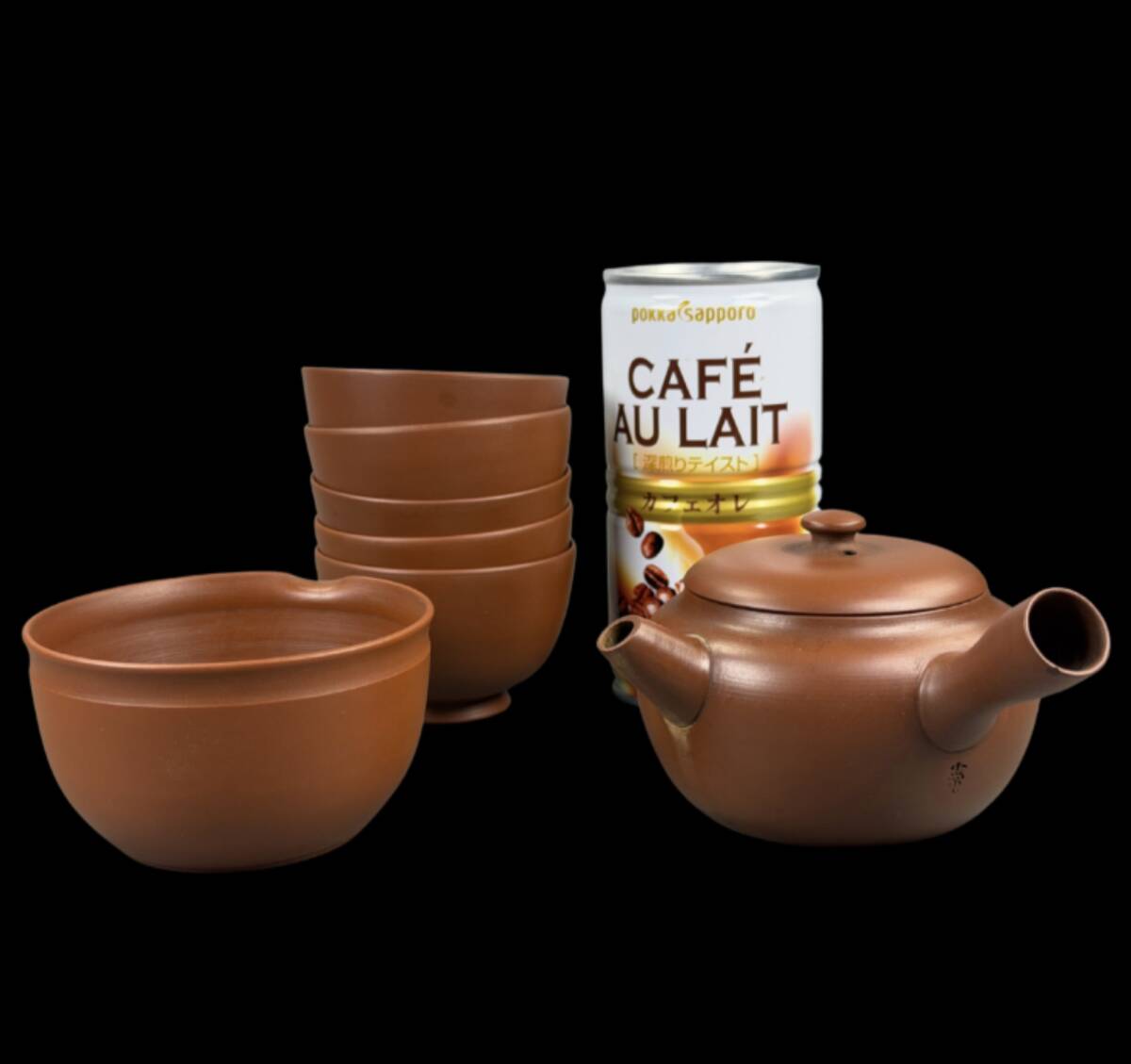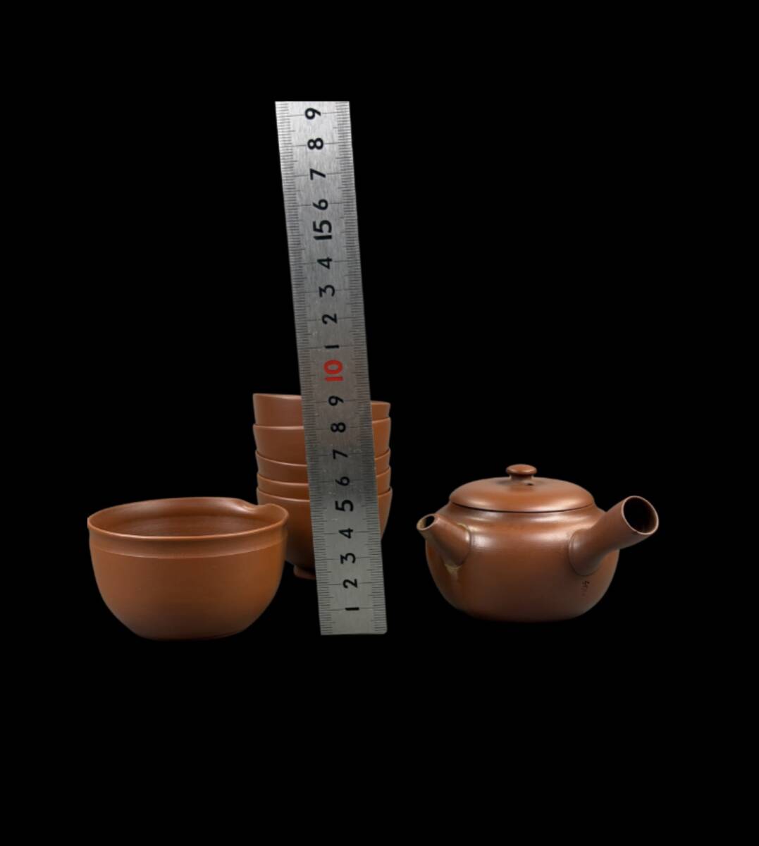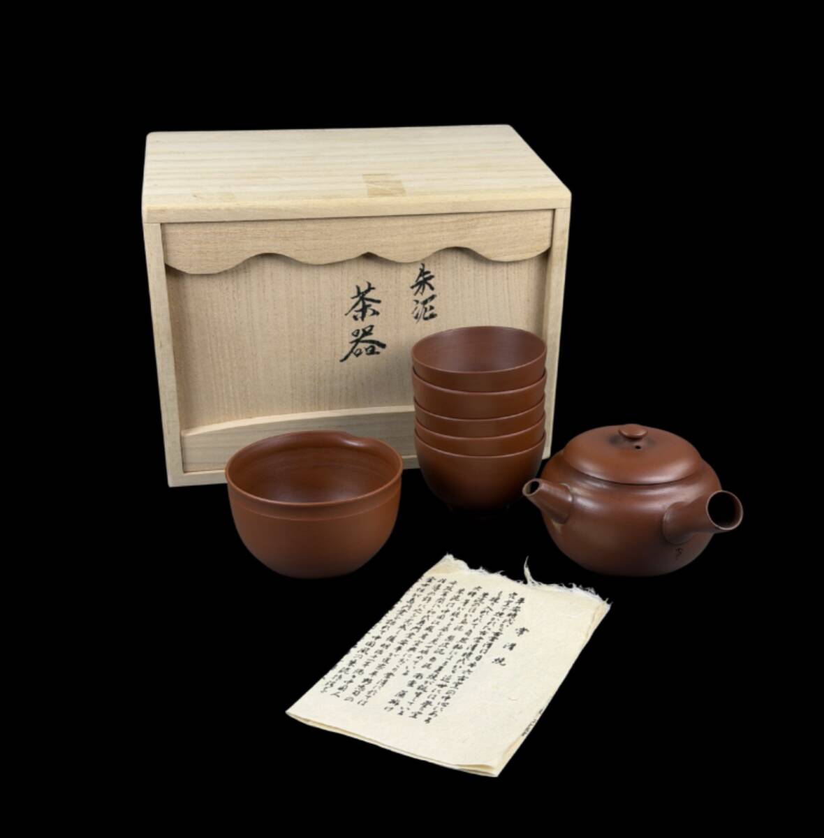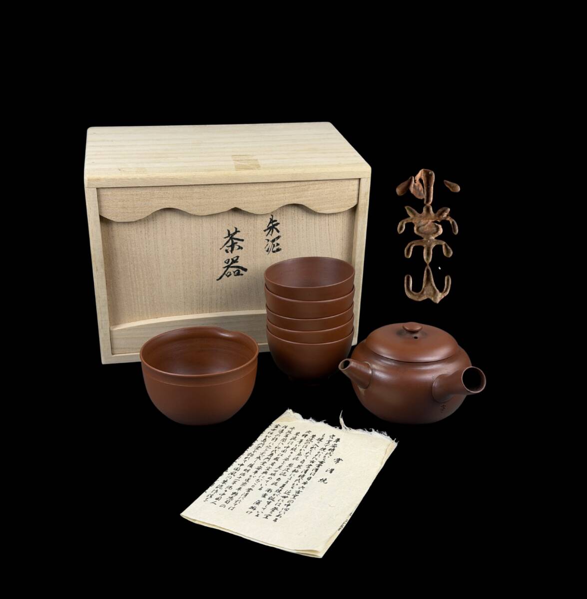 【偲】常滑焼 小常山 二代常山作 四代常山識 朱泥 茶器 急須 湯冷まし 5客 茶器揃い 共箱 煎茶 茶道具 煎茶道具 茶壺 共箱 小振り m-76