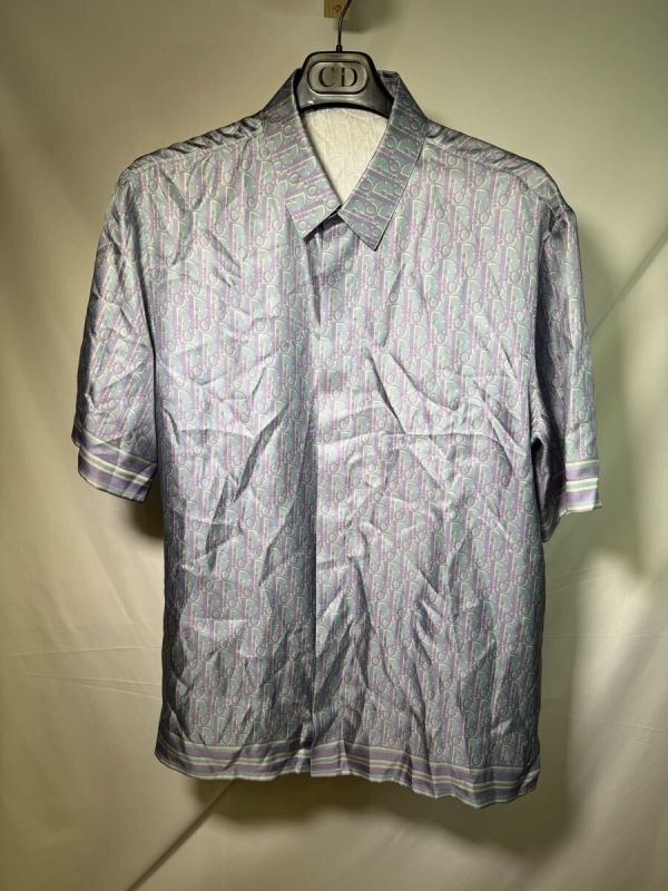 ・Dior HOMME DIOR ディオール 総柄デニムシャツ ショートスリーブ シャツ 紫 40サイズ Y75