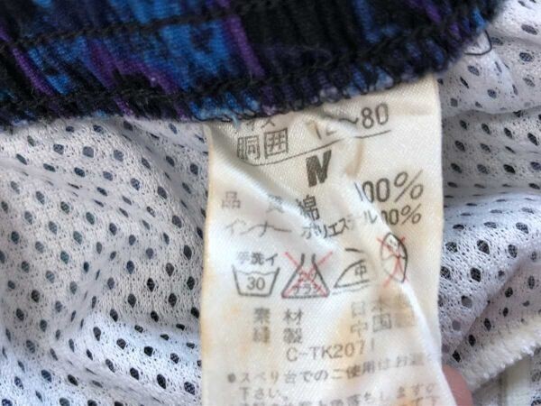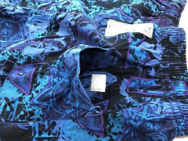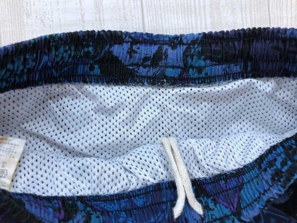 90’s 00’s エキゾチックグラフィック 総柄 ビーチ スイムパンツ レトロ 水着 海パン メンズ コットン100% インナー付き M 青紺紫緑