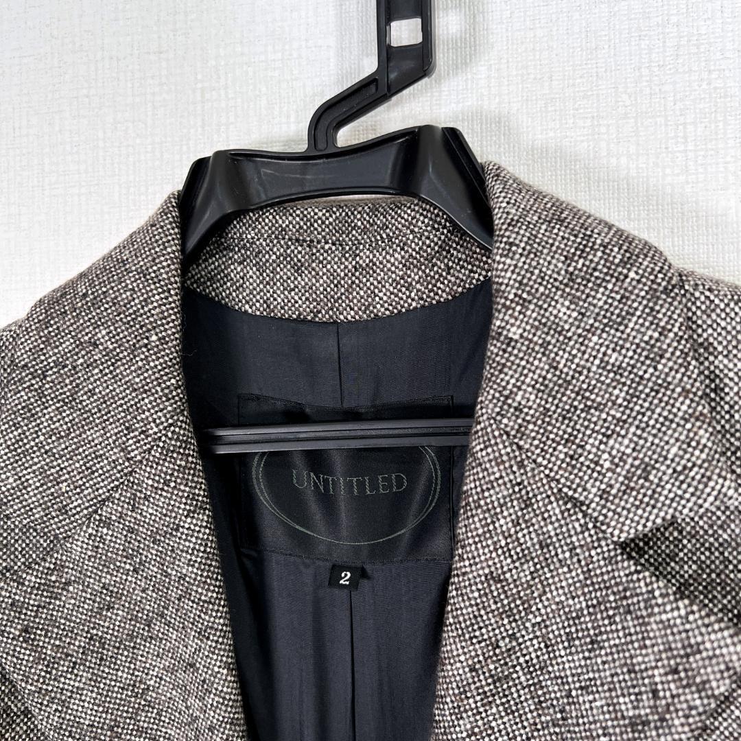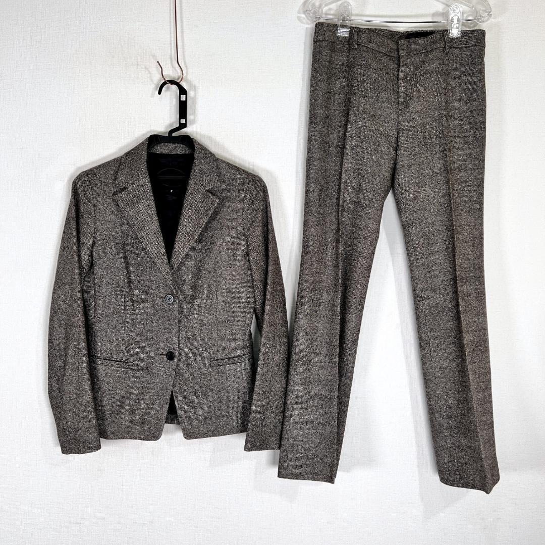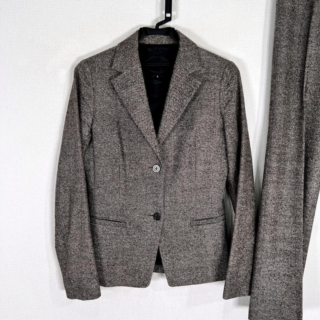 【UNTITLED】アンタイトル グレー 絹混 シルク混 ツイード ジャケット×パンツ スーツ セットアップ 上下セット レディース 2【c007】