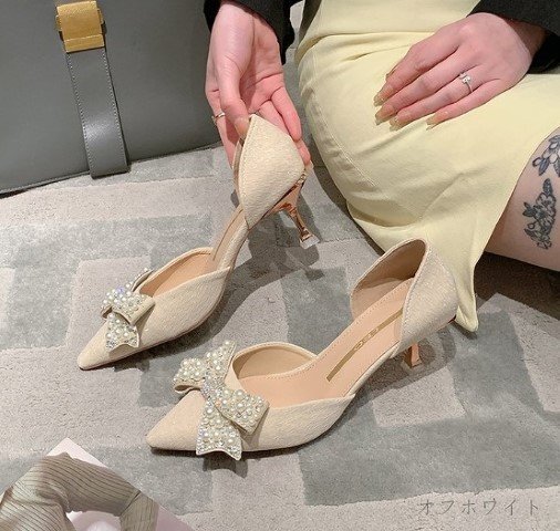 【高品質】全2色 スリッポン ローファー モカシン とんがりトゥ リボン付き sweet系 40 オフホワイト