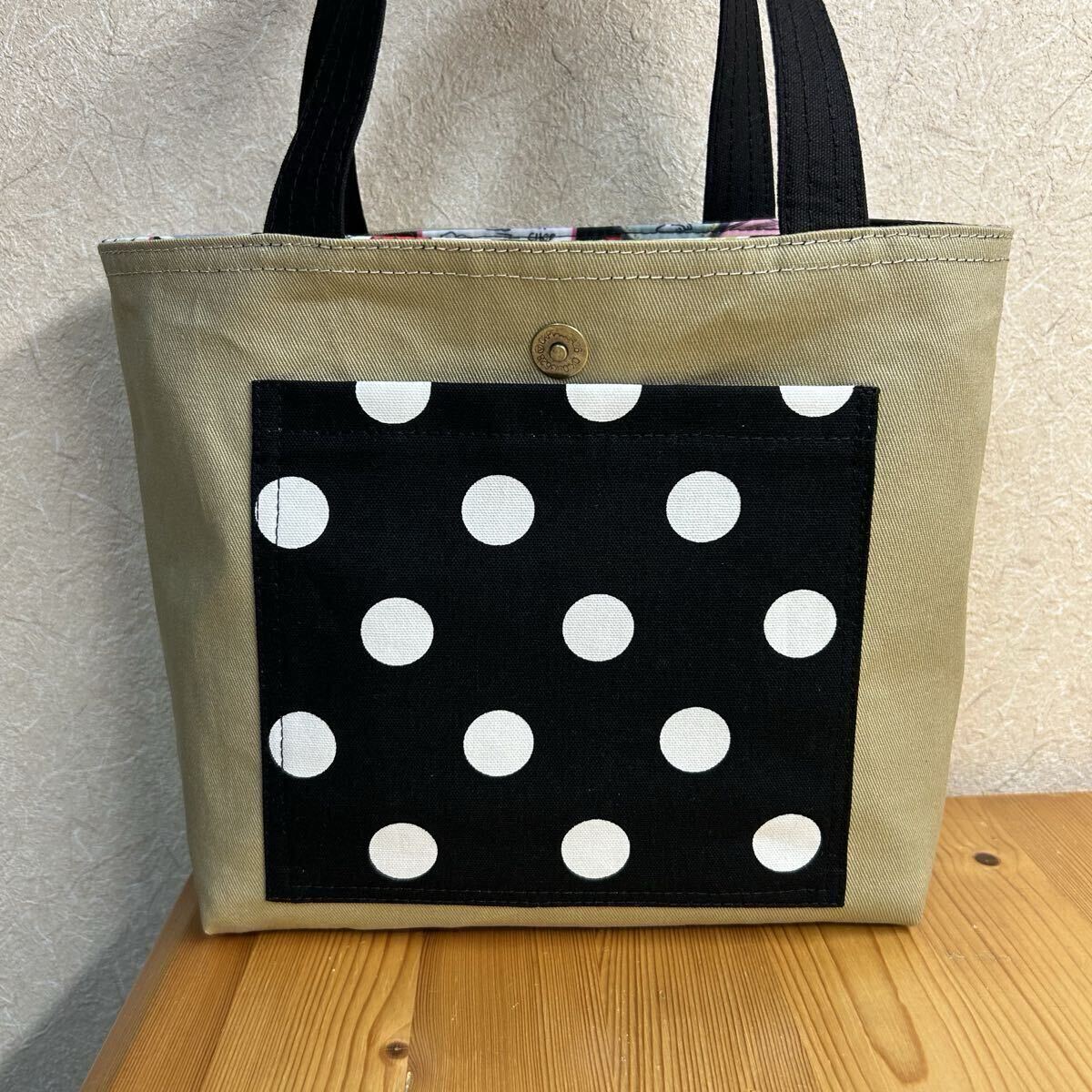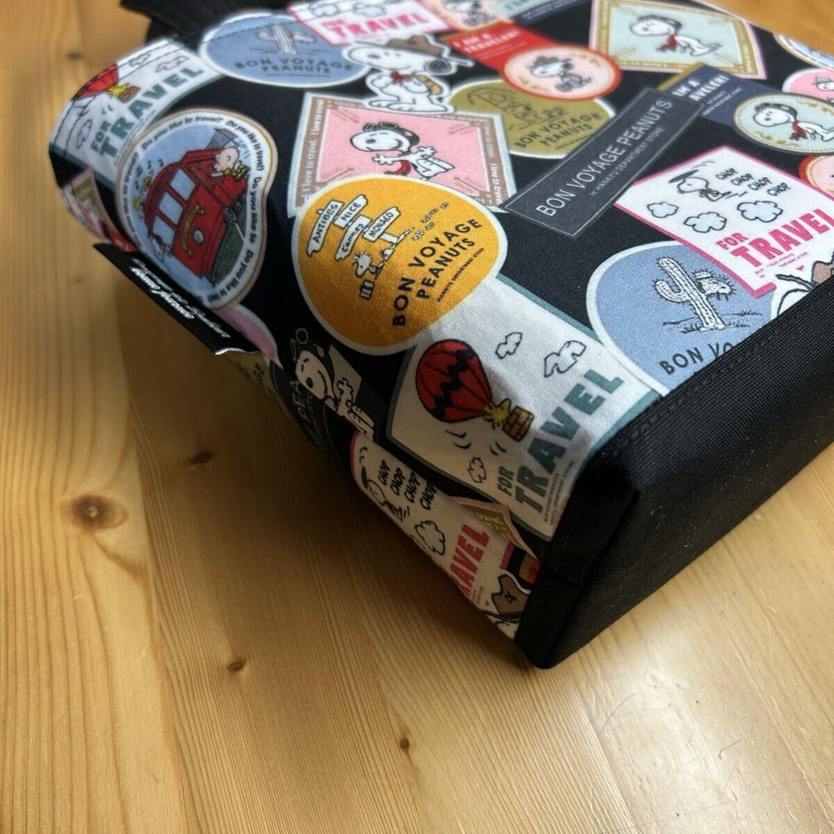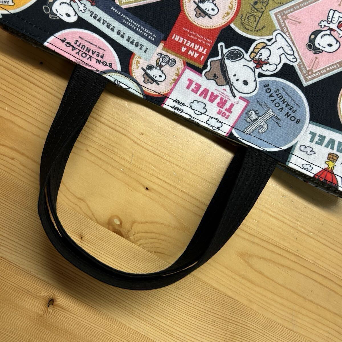 トートバッグ SN(ワッペン) 角マチ 黒 ブラック 切替 hand made ハンドメイド おさんぽ ランチ