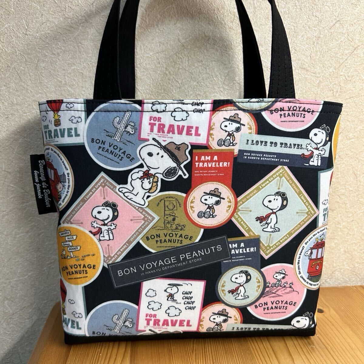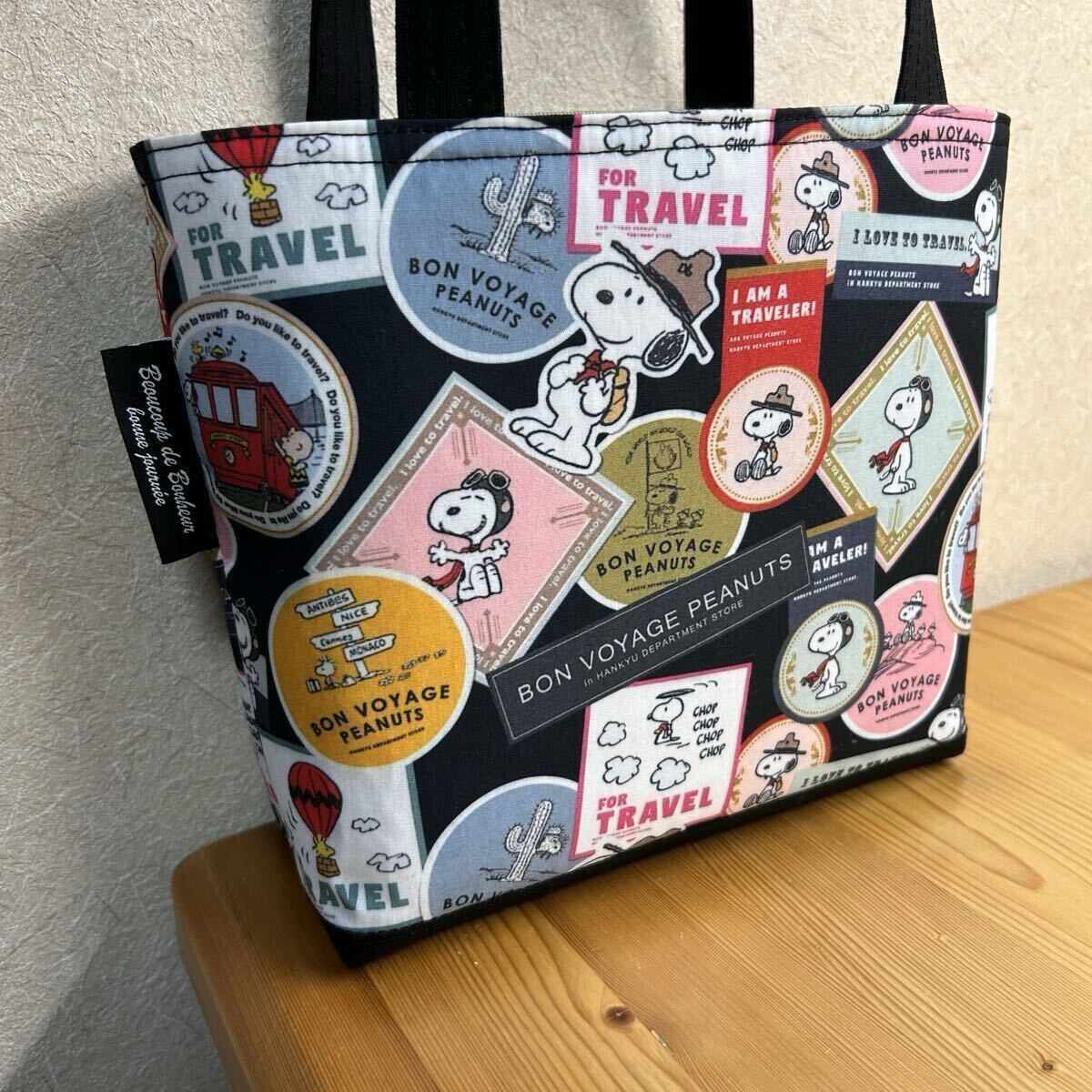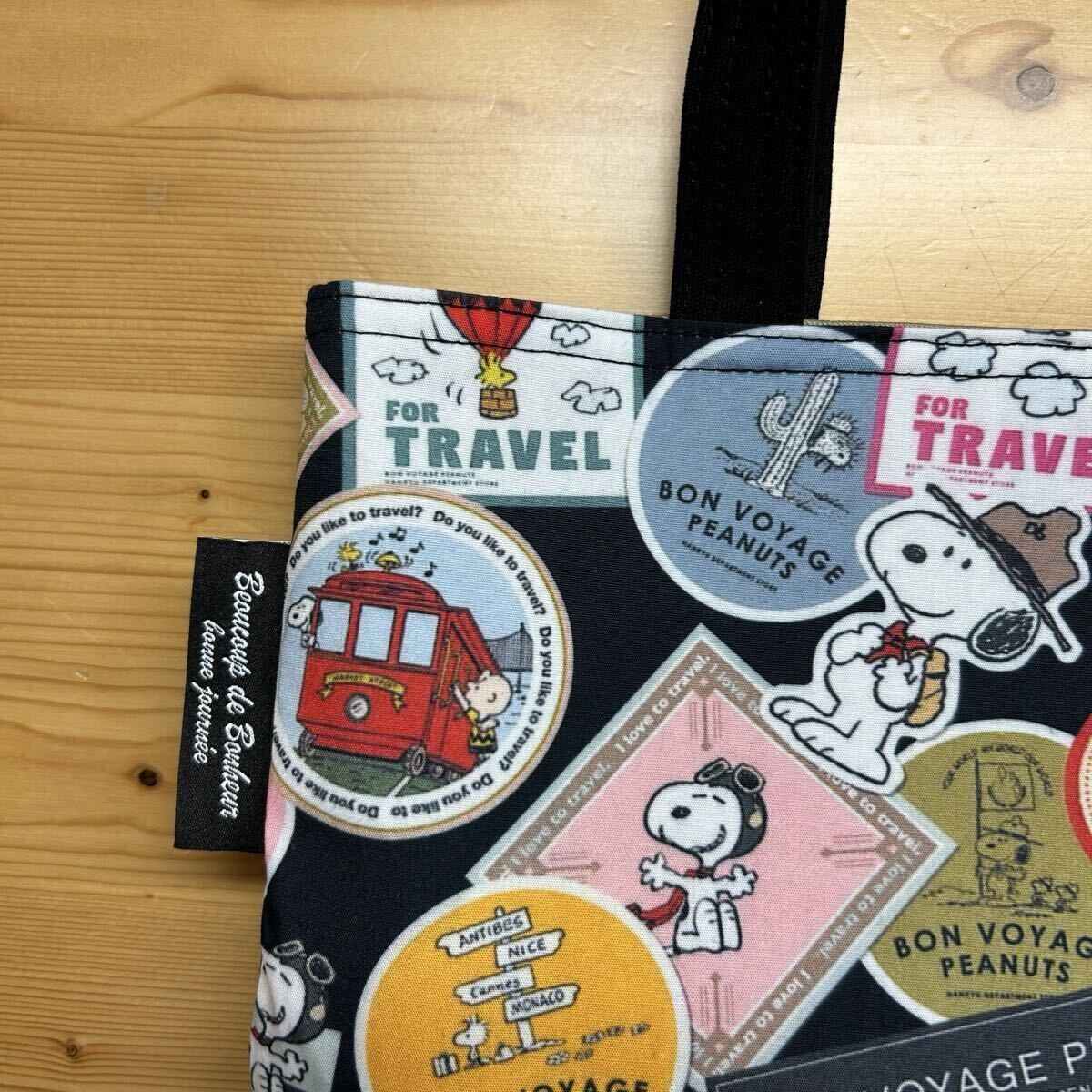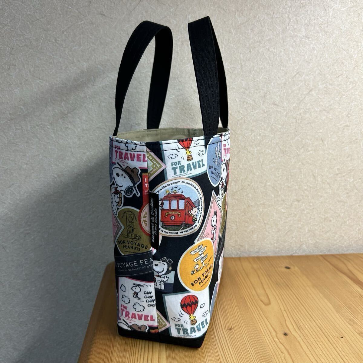 トートバッグ SN(ワッペン) 角マチ 黒 ブラック 切替 hand made ハンドメイド おさんぽ ランチ