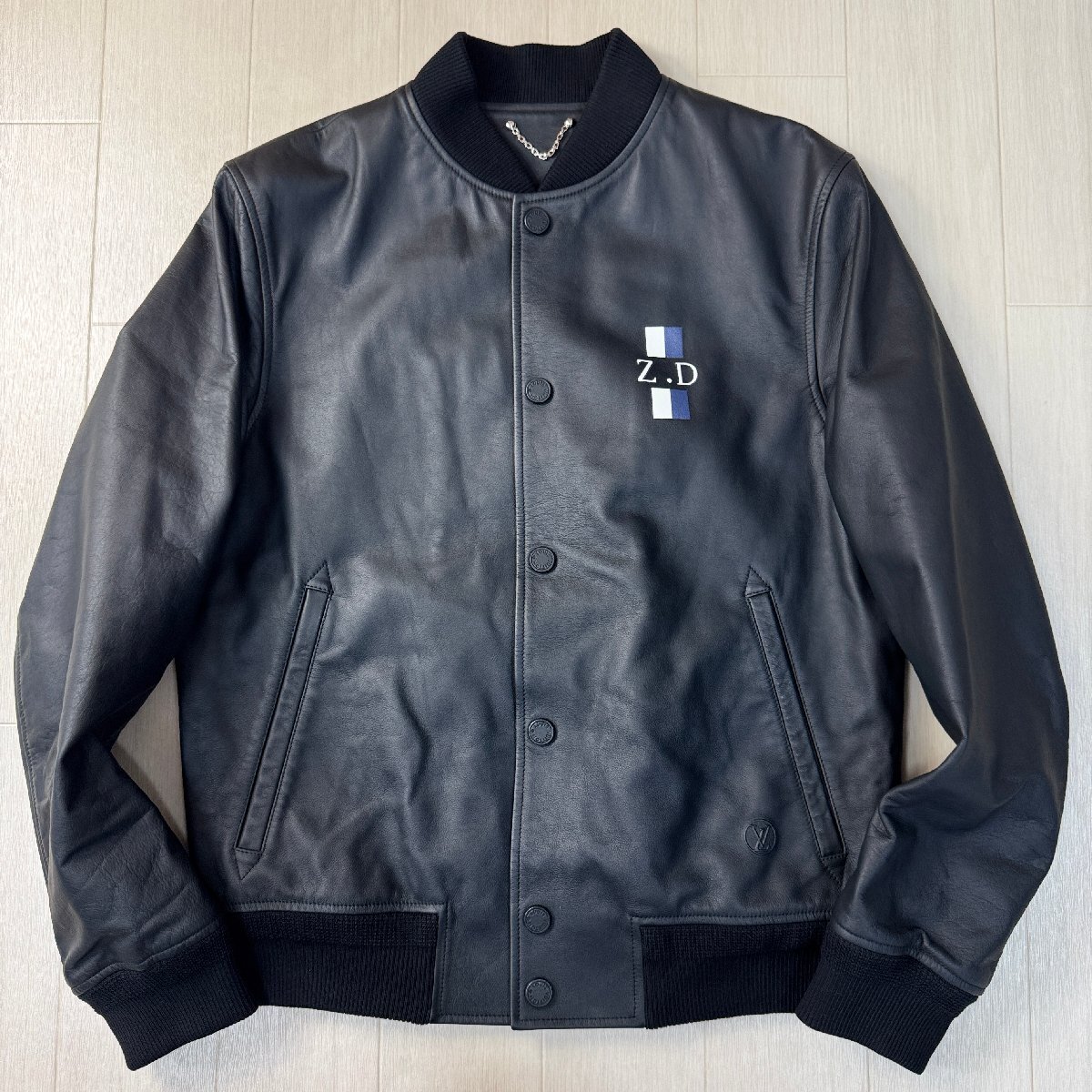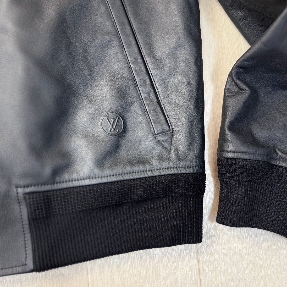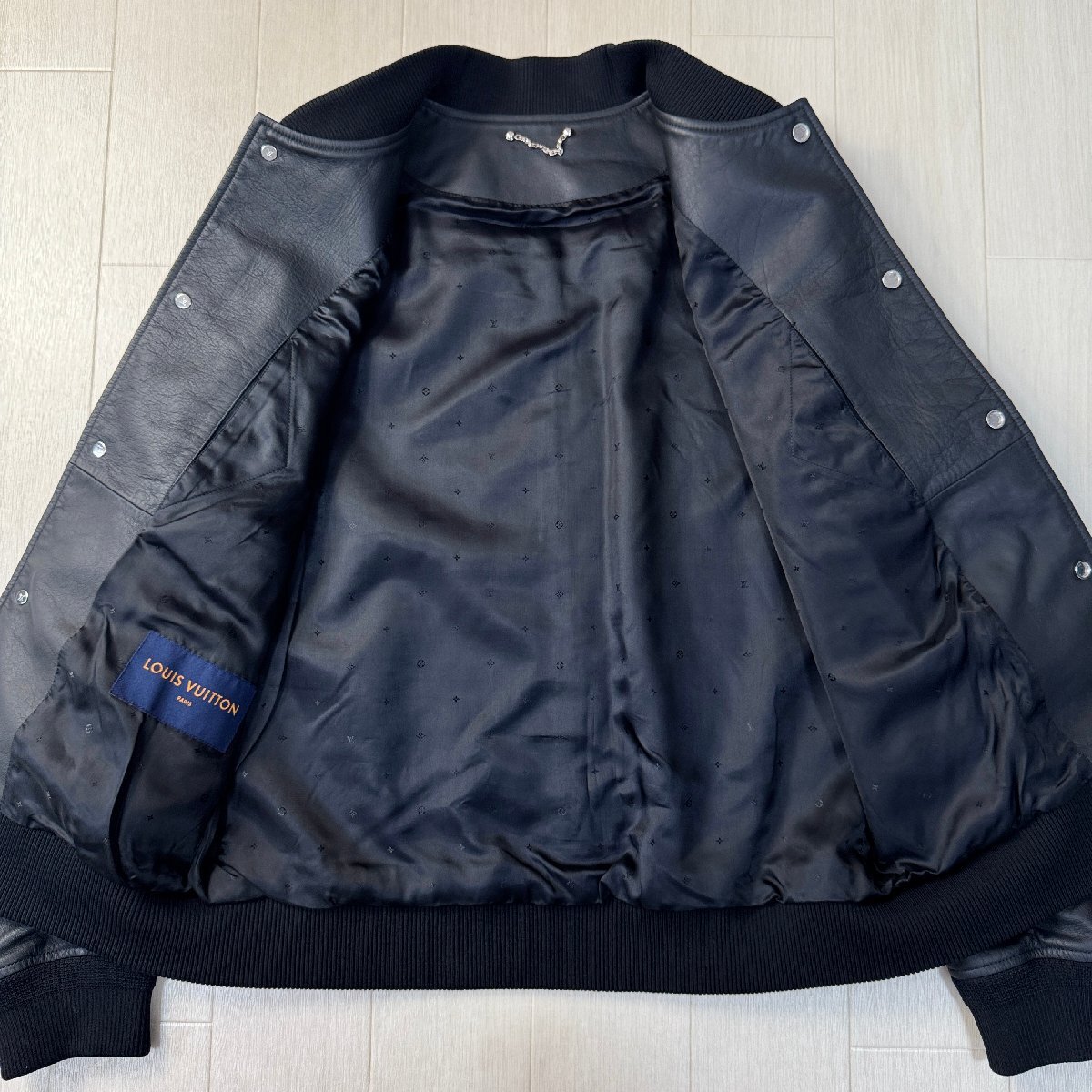 未使用並/50 L-XL相当★ルイヴィトン/LOUIS VUITTON 牛革 カーフレザー ボンバージャケット ブルゾン 型押しLV 裏地モノグラム総柄 メンズ
