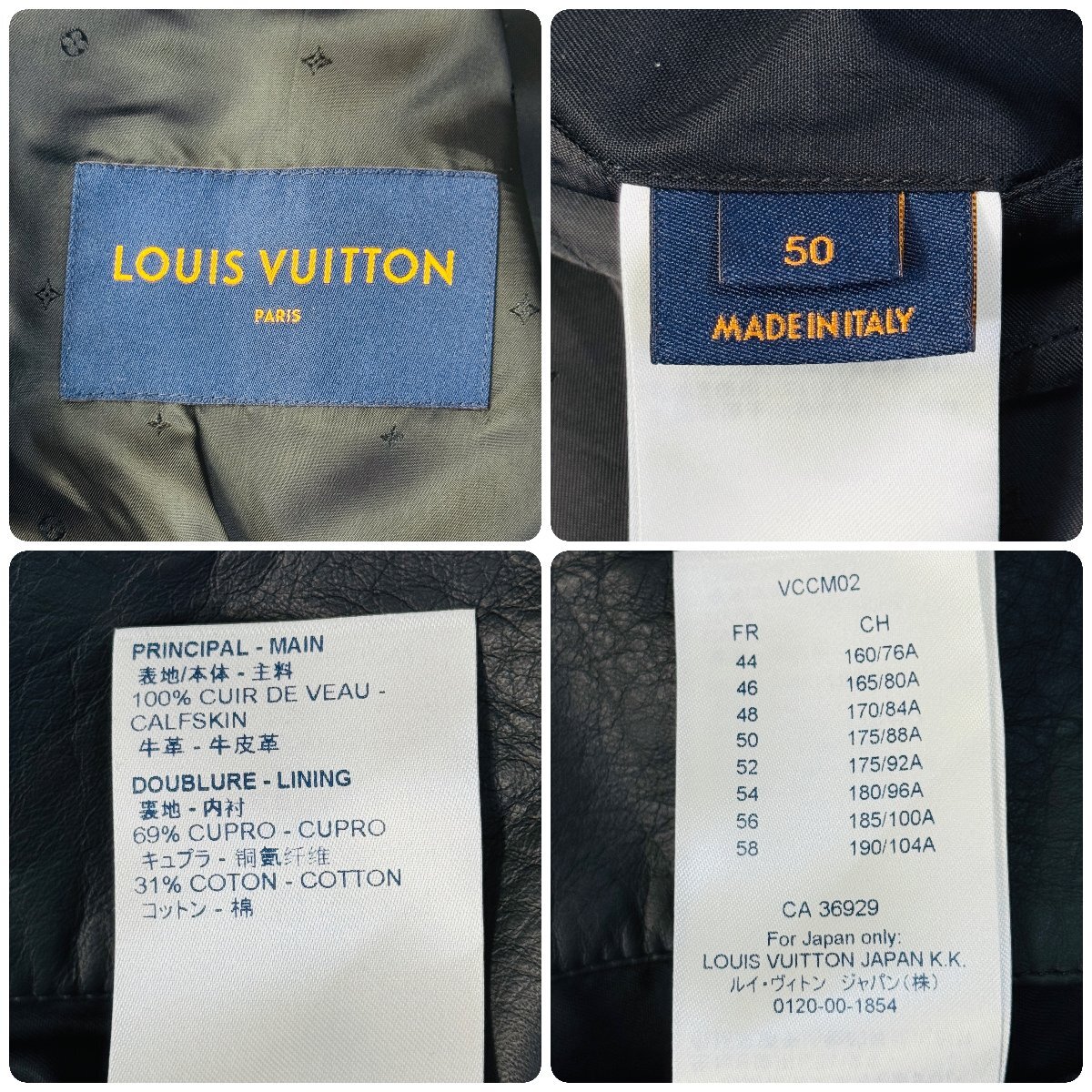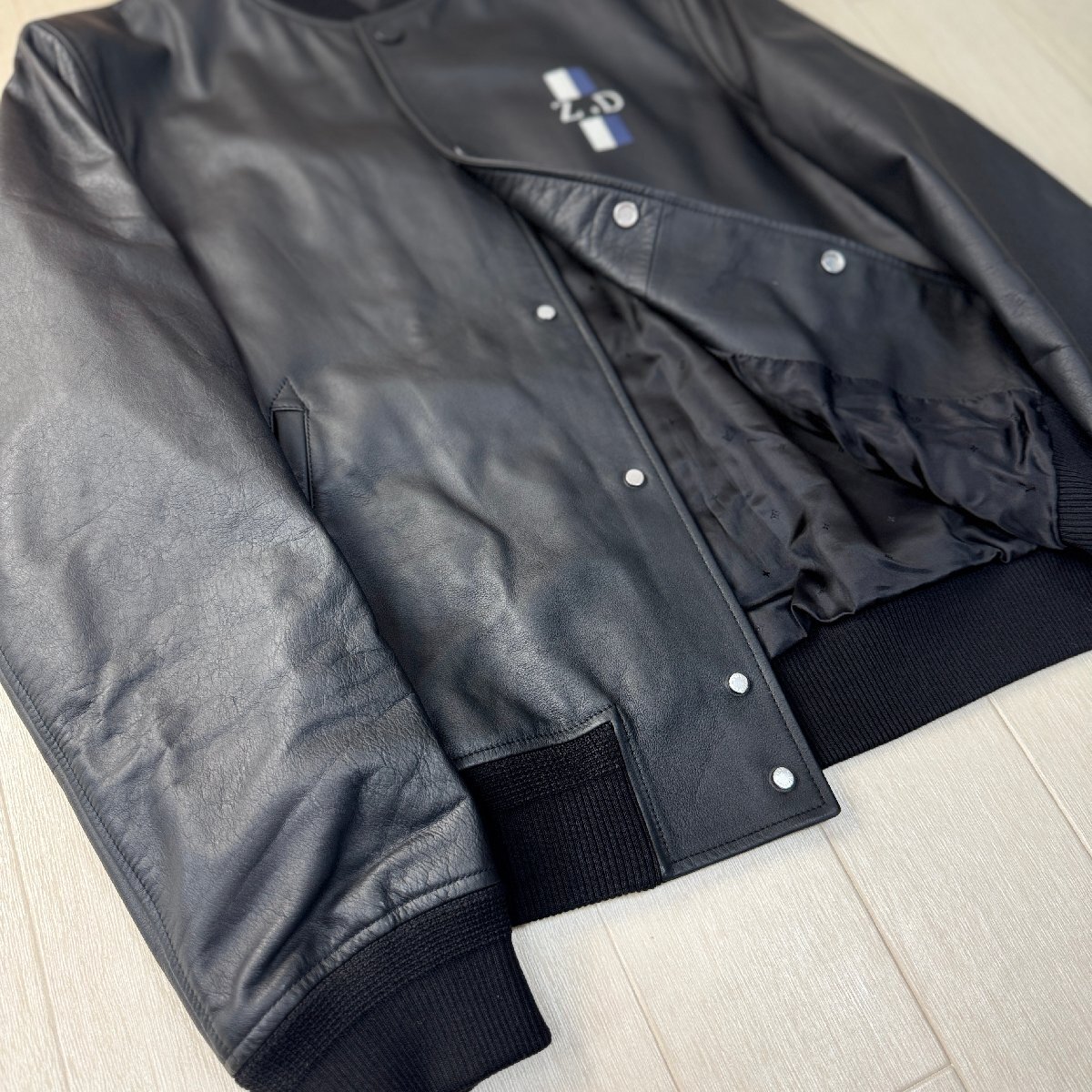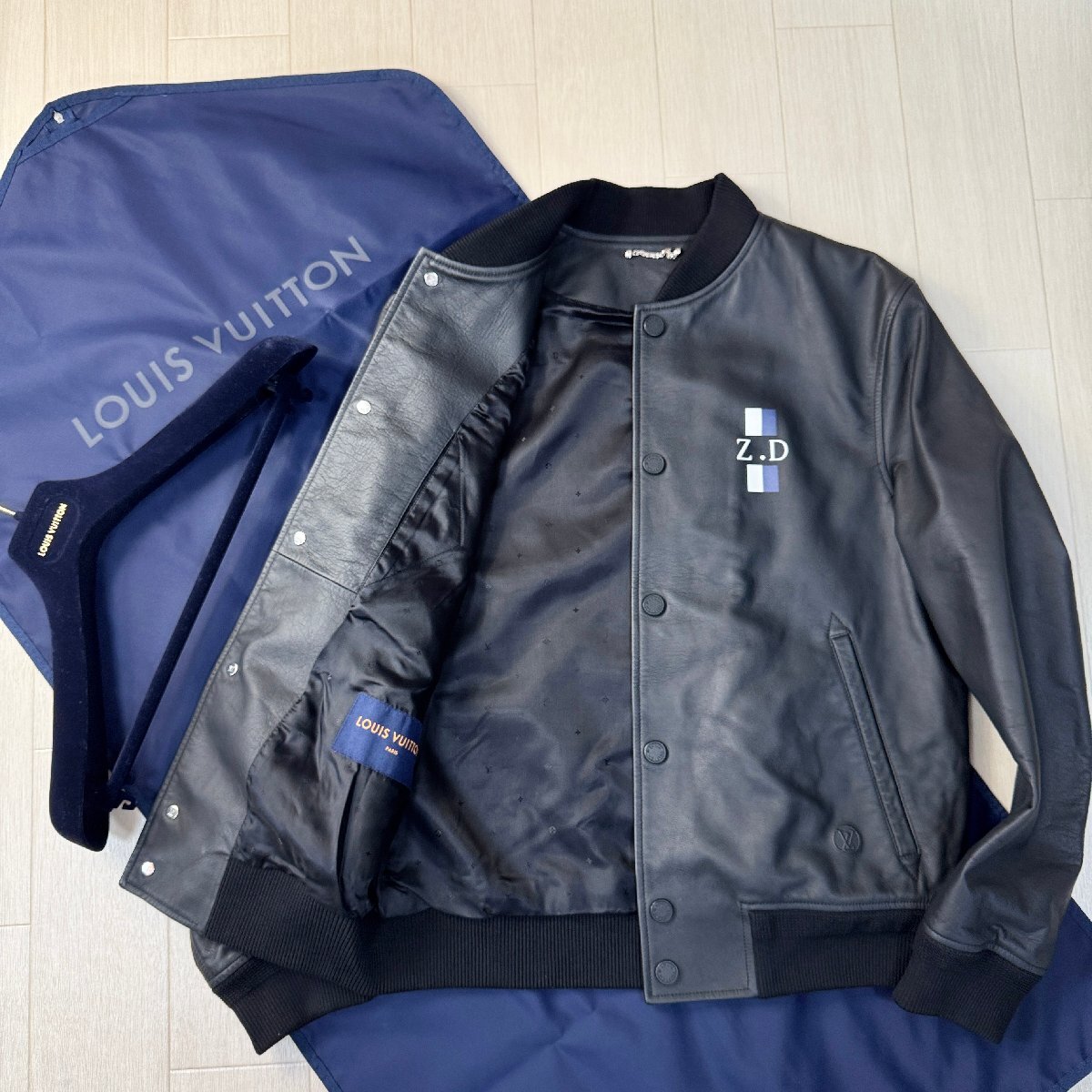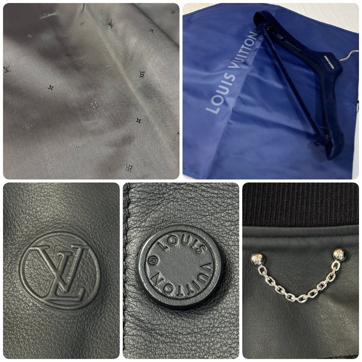 未使用並/50 L-XL相当★ルイヴィトン/LOUIS VUITTON 牛革 カーフレザー ボンバージャケット ブルゾン 型押しLV 裏地モノグラム総柄 メンズ