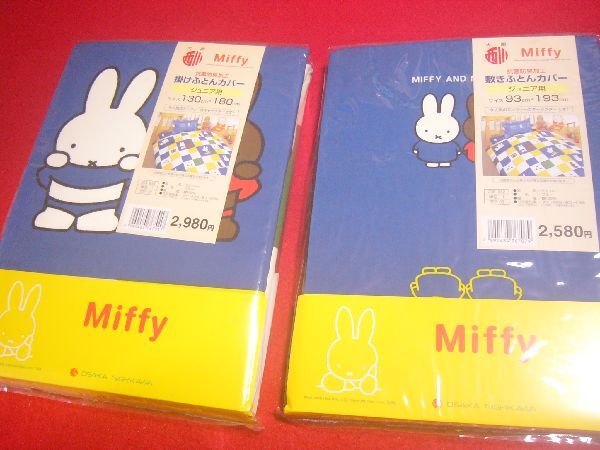 未開封の子供用掛け布団カバーと敷き布団カバーのセットです。人気のミッフィー柄で現在は取り扱いのない稀少なデザイン。ブルー系カラーですので汚れが目立ちにくく性別も選びません。西川の日本製で抗菌防臭加工が施されています。お探しの方は是非この機会に。