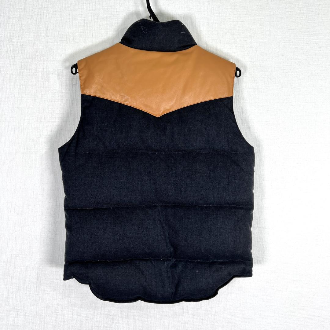 男性用のダークグレー系×ブラウン系の袖なしダウンベスト キルティングベスト 牛革ベスト レザーベスト 本革ベストです。中古品ですが目立つ傷や汚れもなく、まだまだ使えます 古着 ジャーナルスタンダード (株)J.S. WORKS