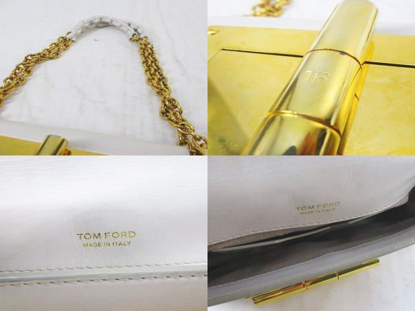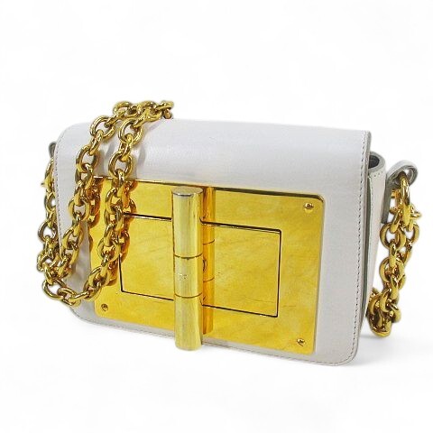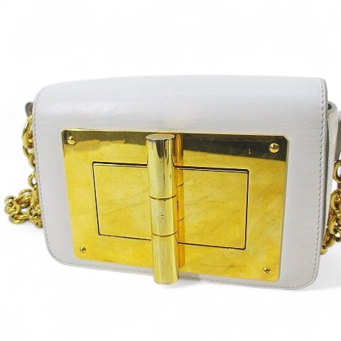 トムフォード TOM FORD NEW NATALIA MINI WITH CHAIN ナタリア ショルダーバッグ ゴールド金具 ホワイト 白系 レザー イタリア製 レディース
