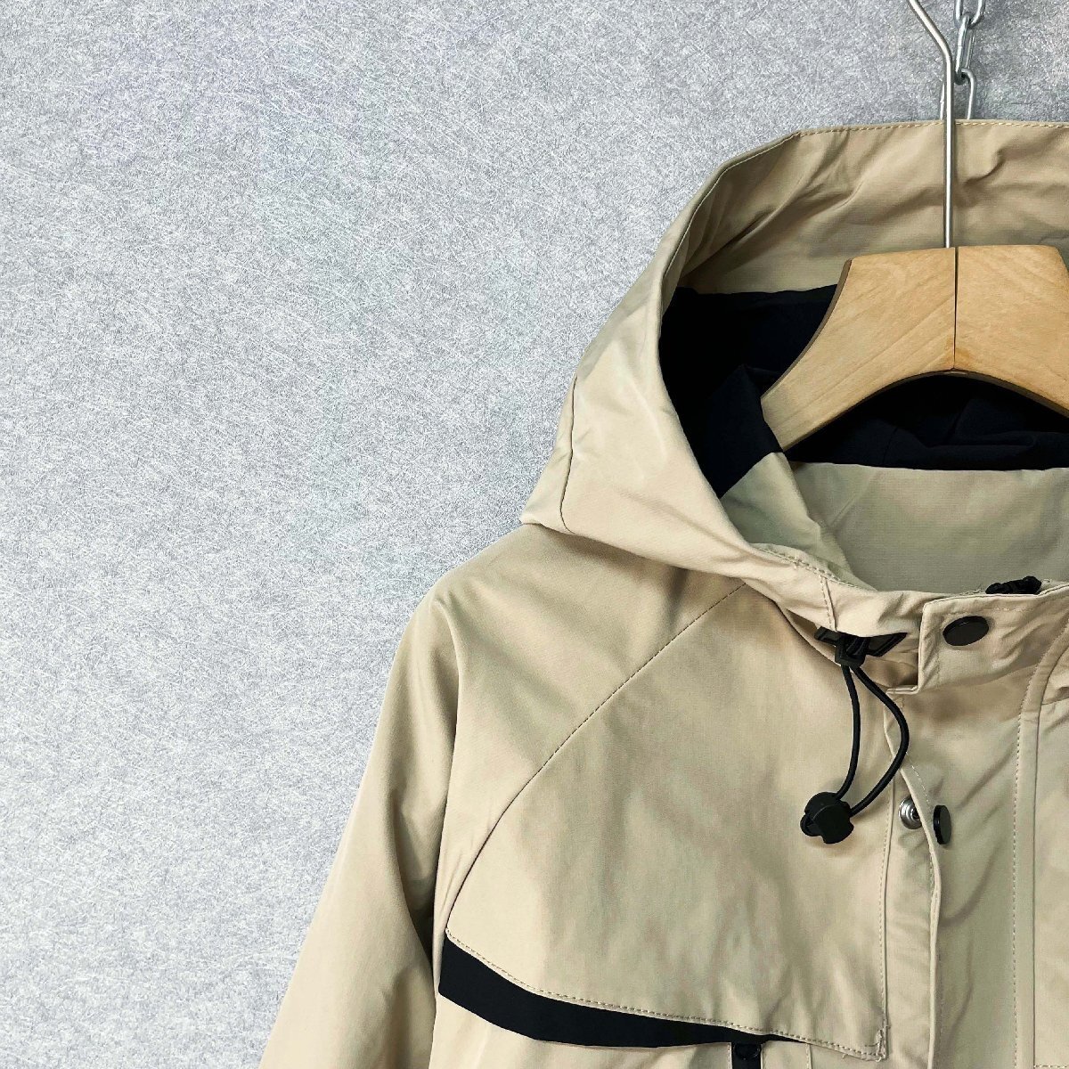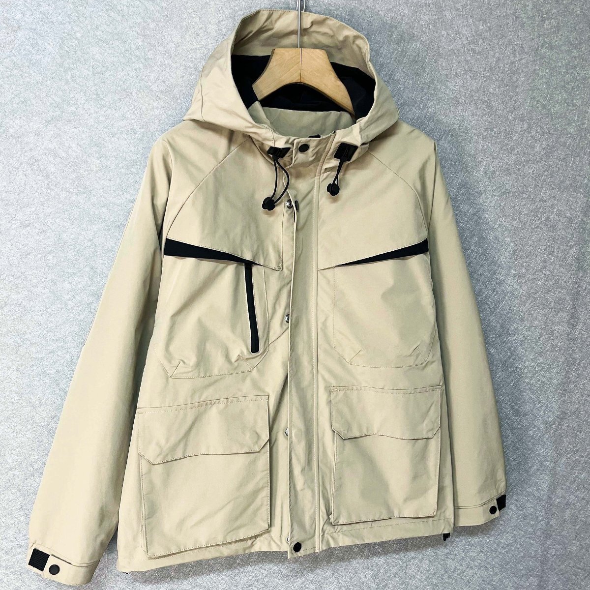 シンプルな無地デザインは、幅広いコーディネートに対応可能。フード付き&立ち襟仕様で首元までしっかりカバーし、風の侵入を防ぎます。複数の大容量ポケットも備えており、スマートフォンや小物の収納にも便利です。