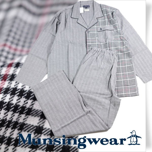 定価1.3万 Munsingwear マンシングウェア メンズ 秋冬 長袖長パンツ 綿100% 起毛素材 テーラードパジャマ L グレー |