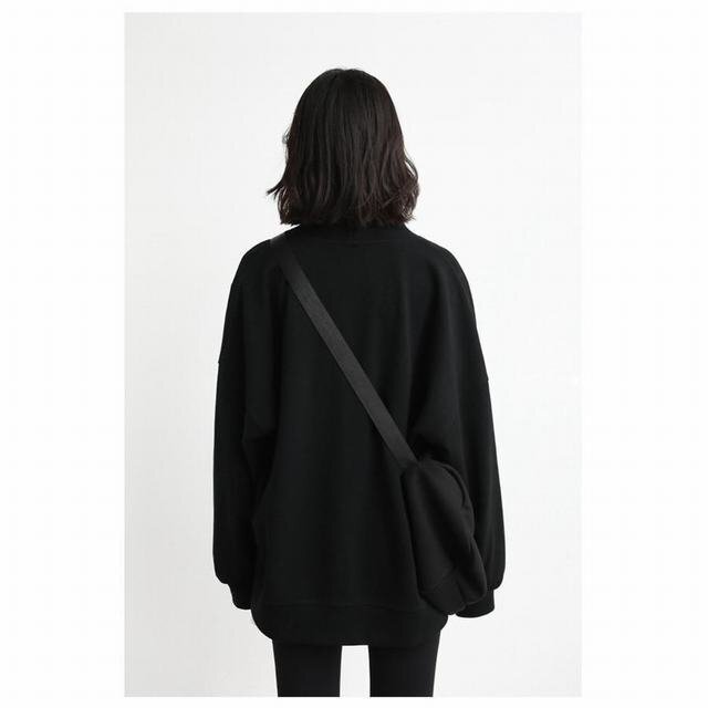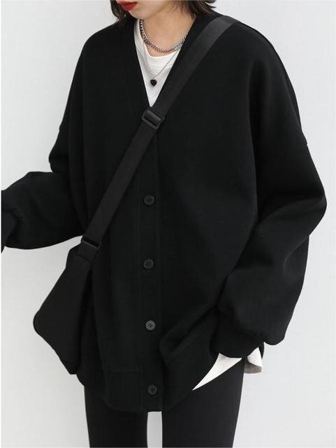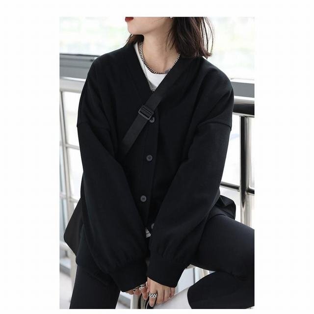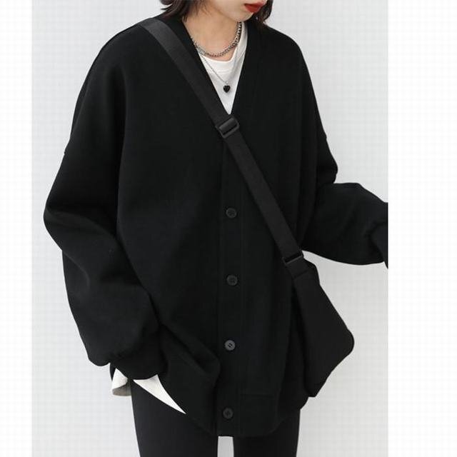 スウェット カーディガン レディース 前開き Vネック トレーナー トップス ビッグシルエット 秋春 ブラック XL