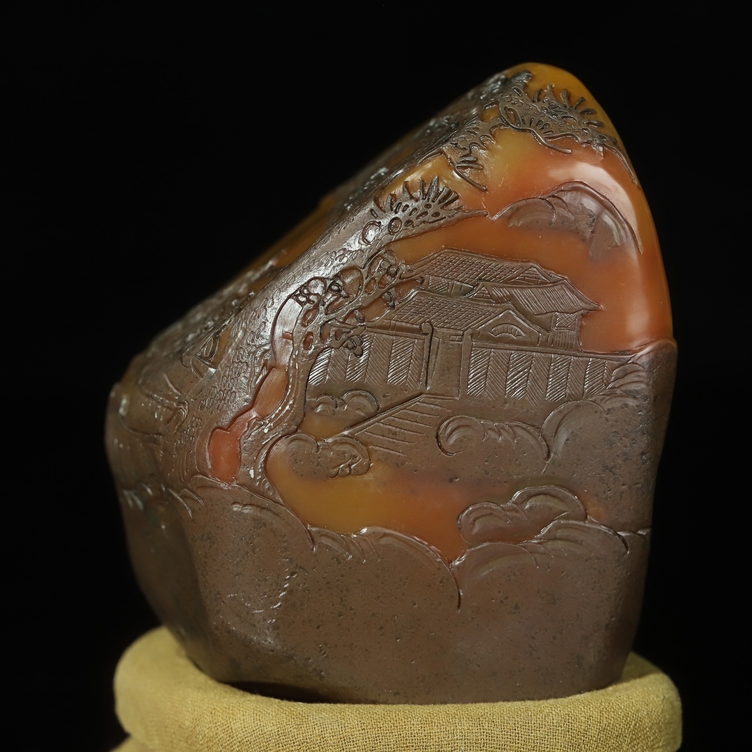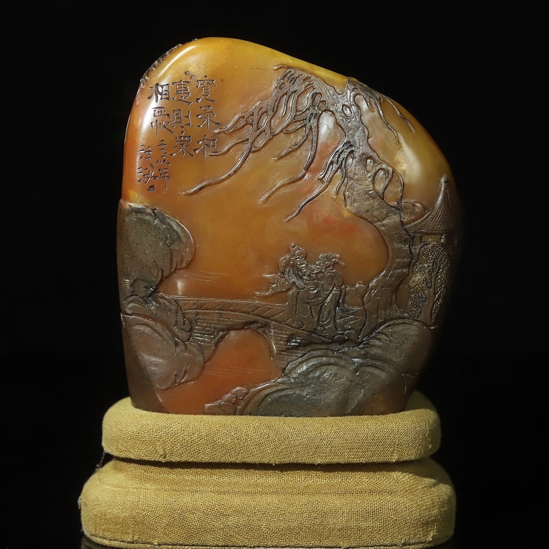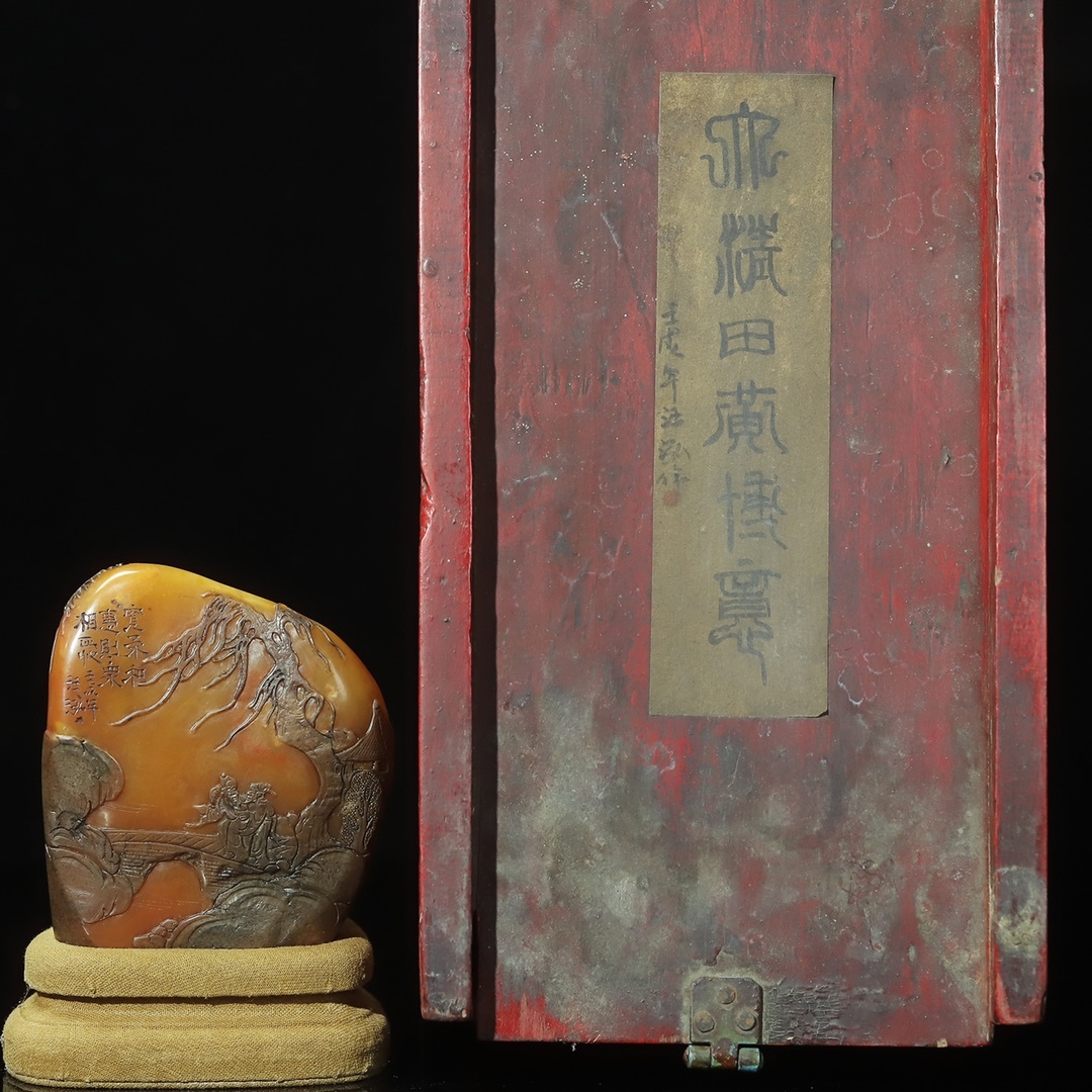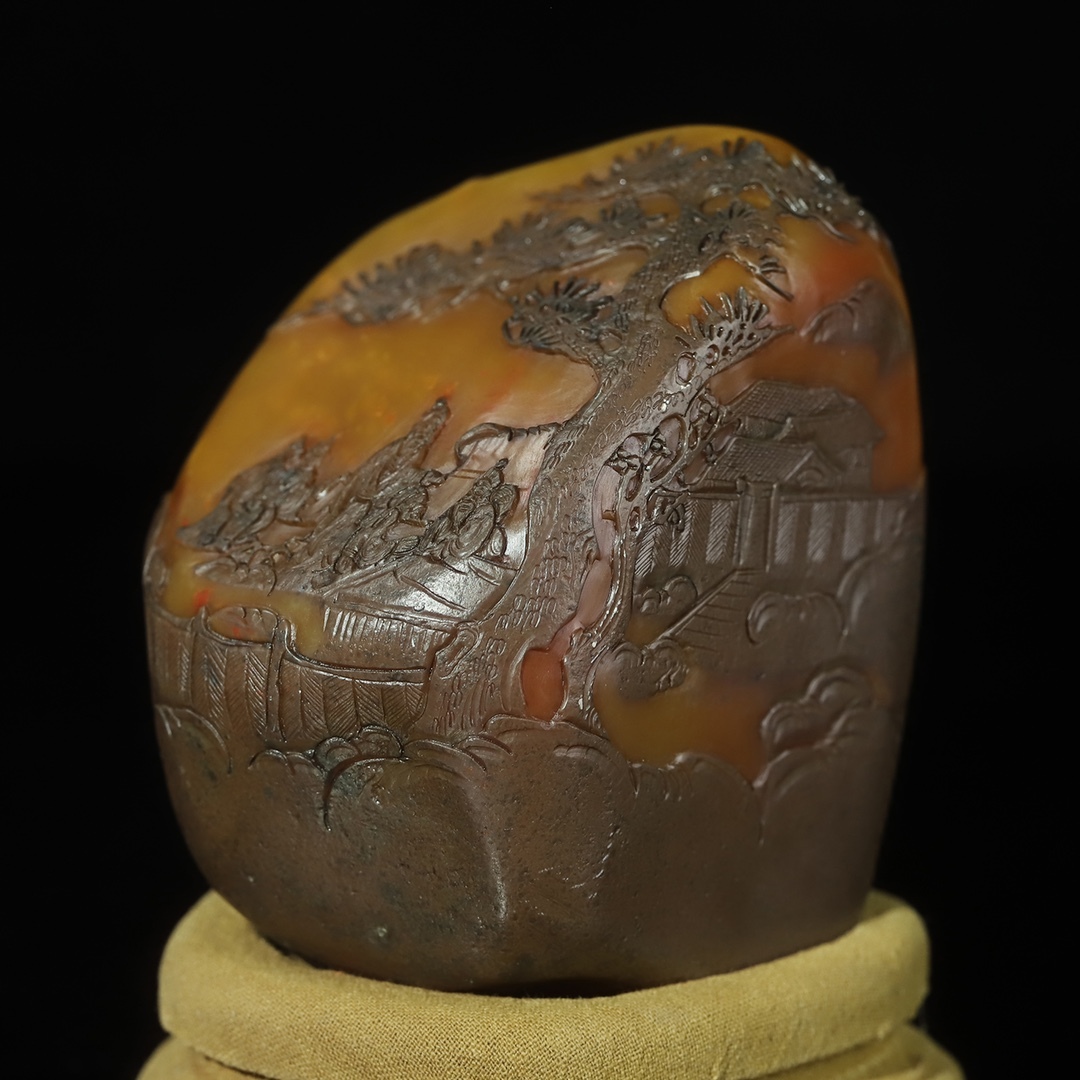 *珍品旧蔵* 【清代篆刻家 汪泓】寿山石 烏鴉皮田黄微彫 人物故事紋 薄意印章 天然石 手彫 篆刻 古印材 極細工 中国古玩 骨董品 古美味 H410