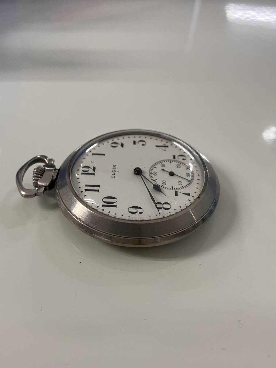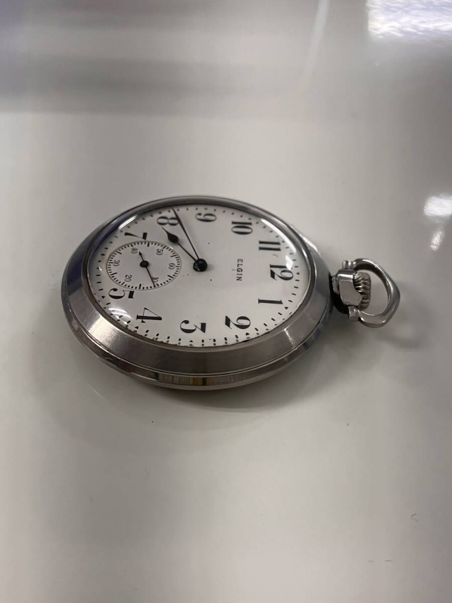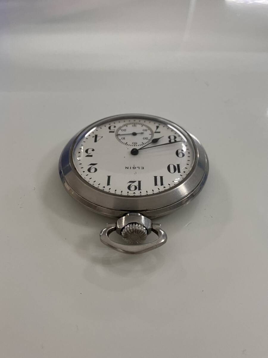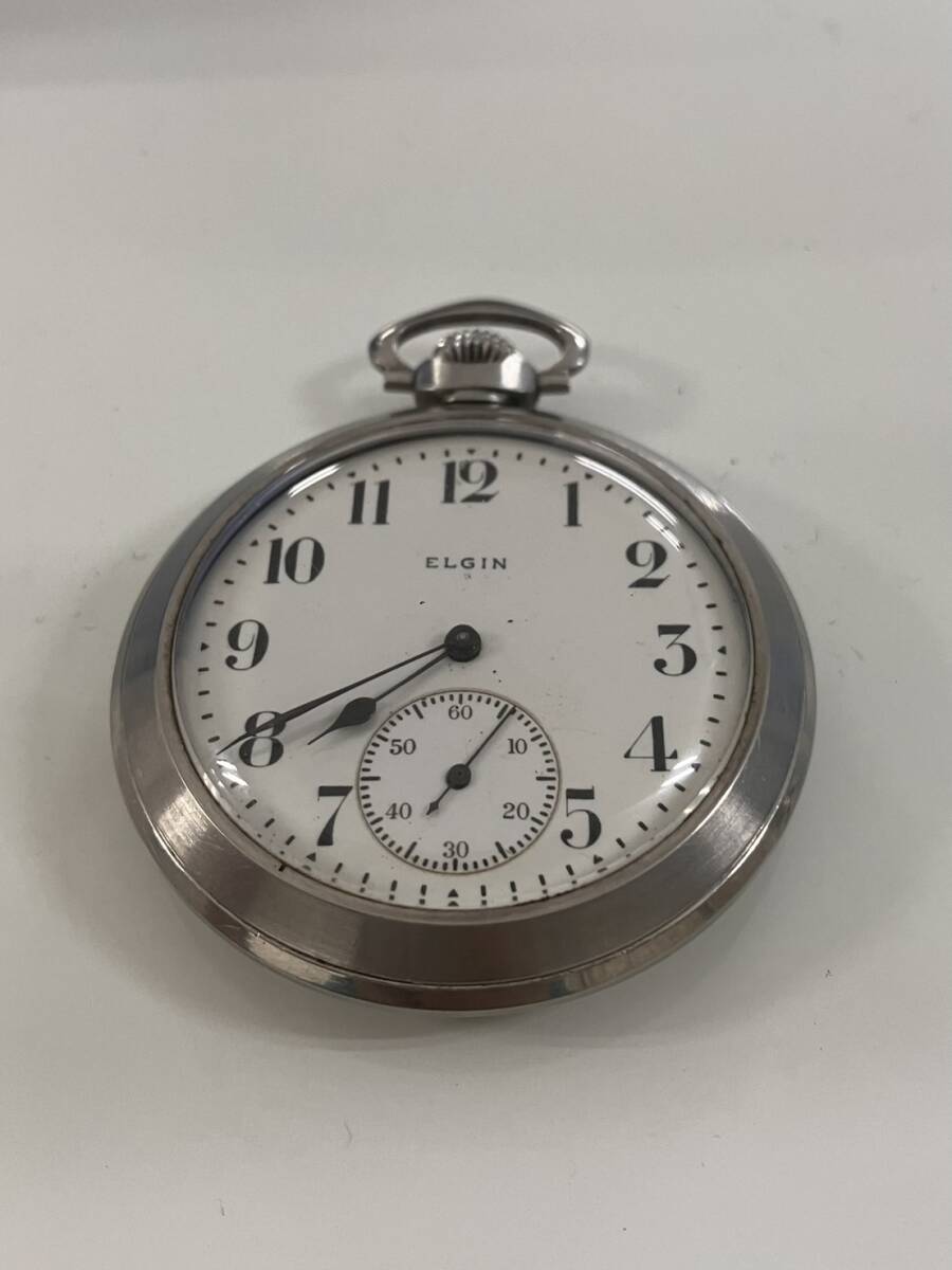 ELGIN/エルジン 手巻き 懐中時計 傷汚れ等有 リューズ上がらないため時刻合わせ出来ません 稼働品 ジャンク メンテナンス等必要 現状お渡し