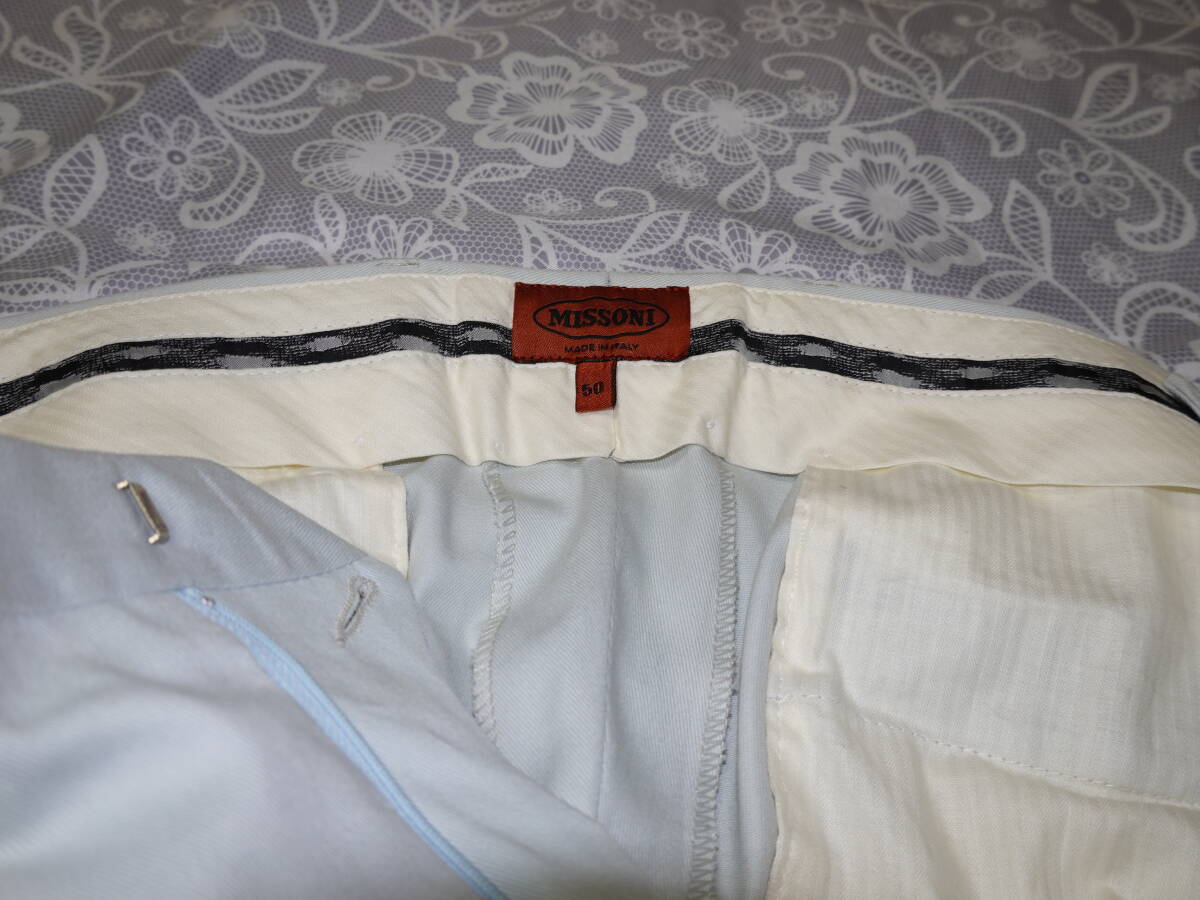 【オレンジラベル】 MISSONI ミッソーニ 水色 50 MADE in ITALY スラックス ズボン パンツ メンズ