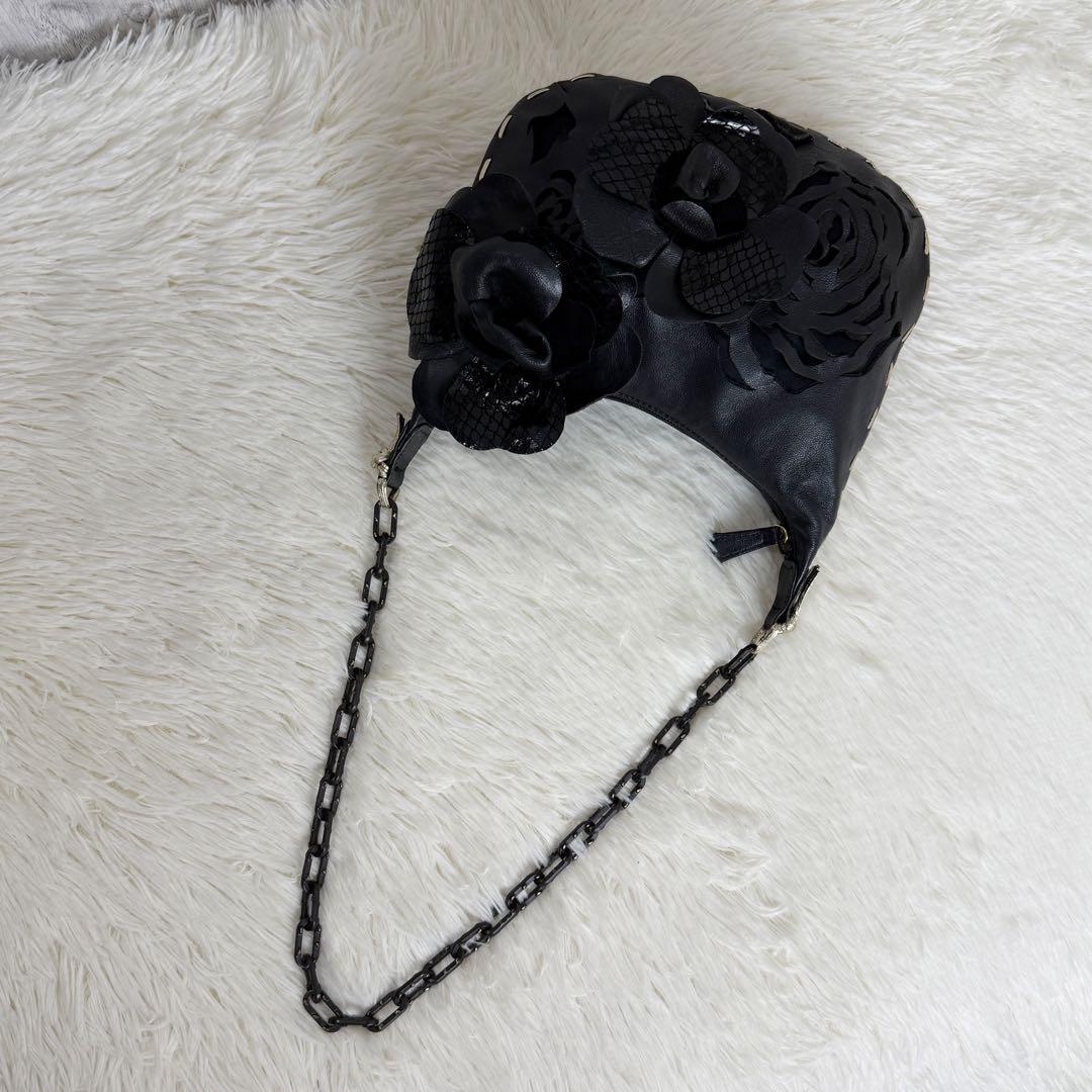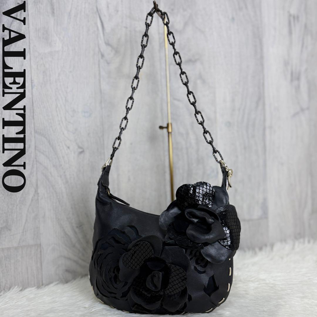 VALENTINOのローズ フラワー レザー チェーン ショルダーバッグです。