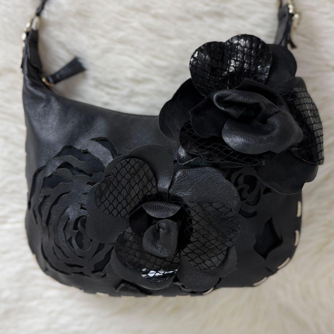 バッグ正面にレザーのローズ・フラワーデザインになっている希少デザインで、とても可愛いです。