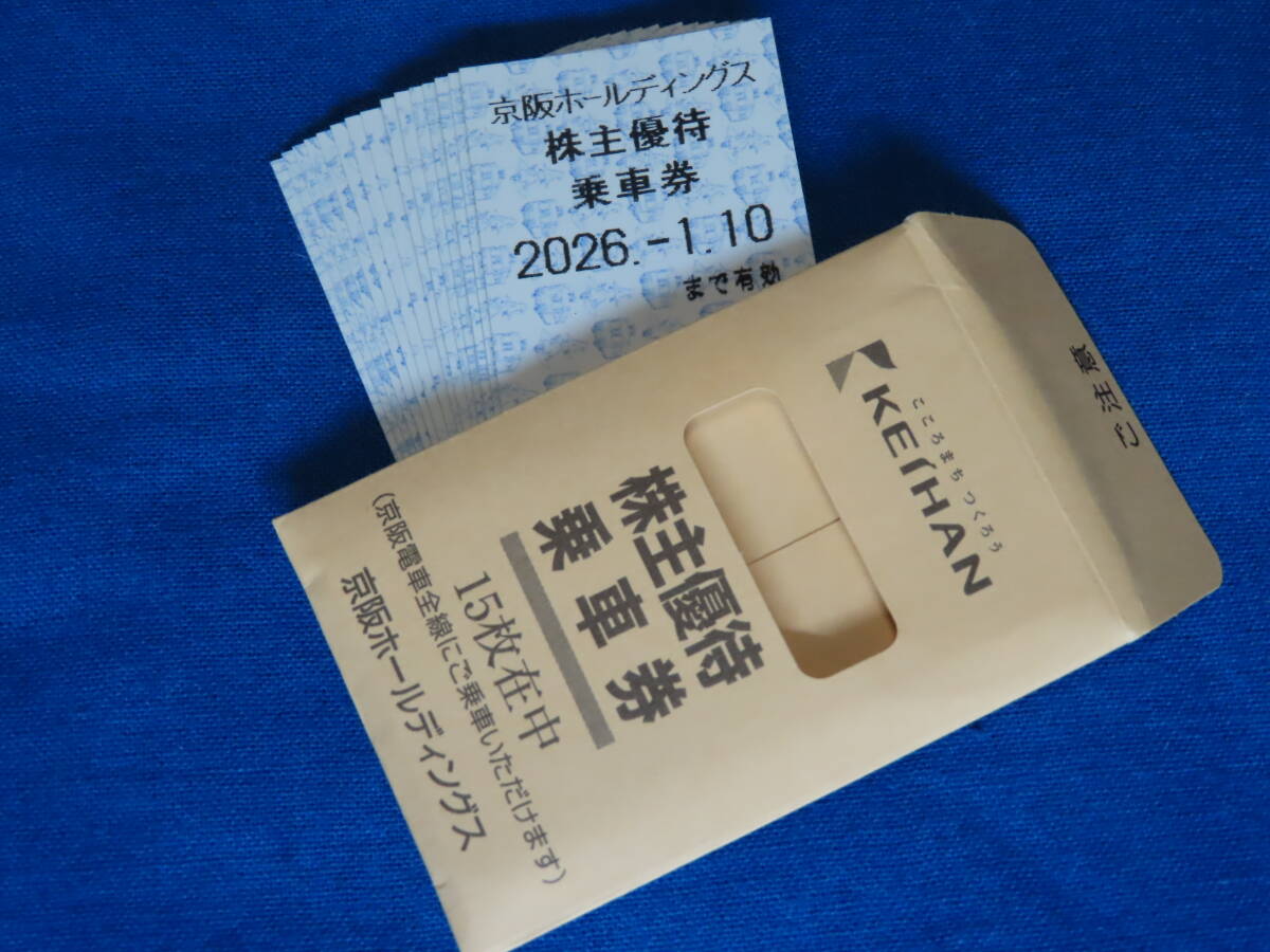出品物は、「京阪電車 株主優待乗車券×15枚」です。