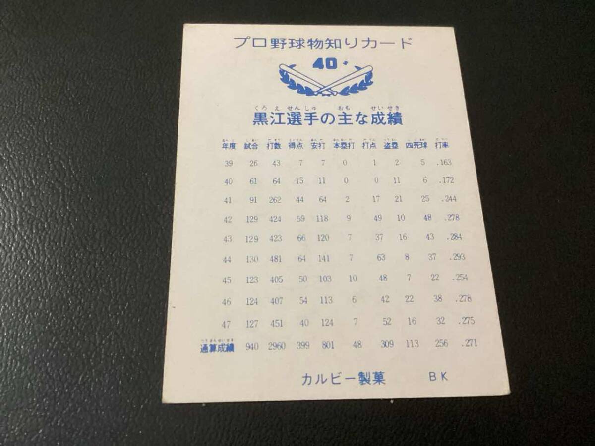 良品 カルビー73年 バット版 黒江(巨人)No.40 プロ野球カード