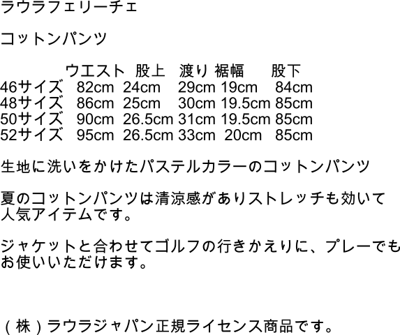 街の洋服屋フタバ 綿パンツ W90cm ラウラフェリーチェ138-2001-82 SS 春 夏 メンズ カジュアルパンツ 1点物 40代 50代 60代 ゴルフ