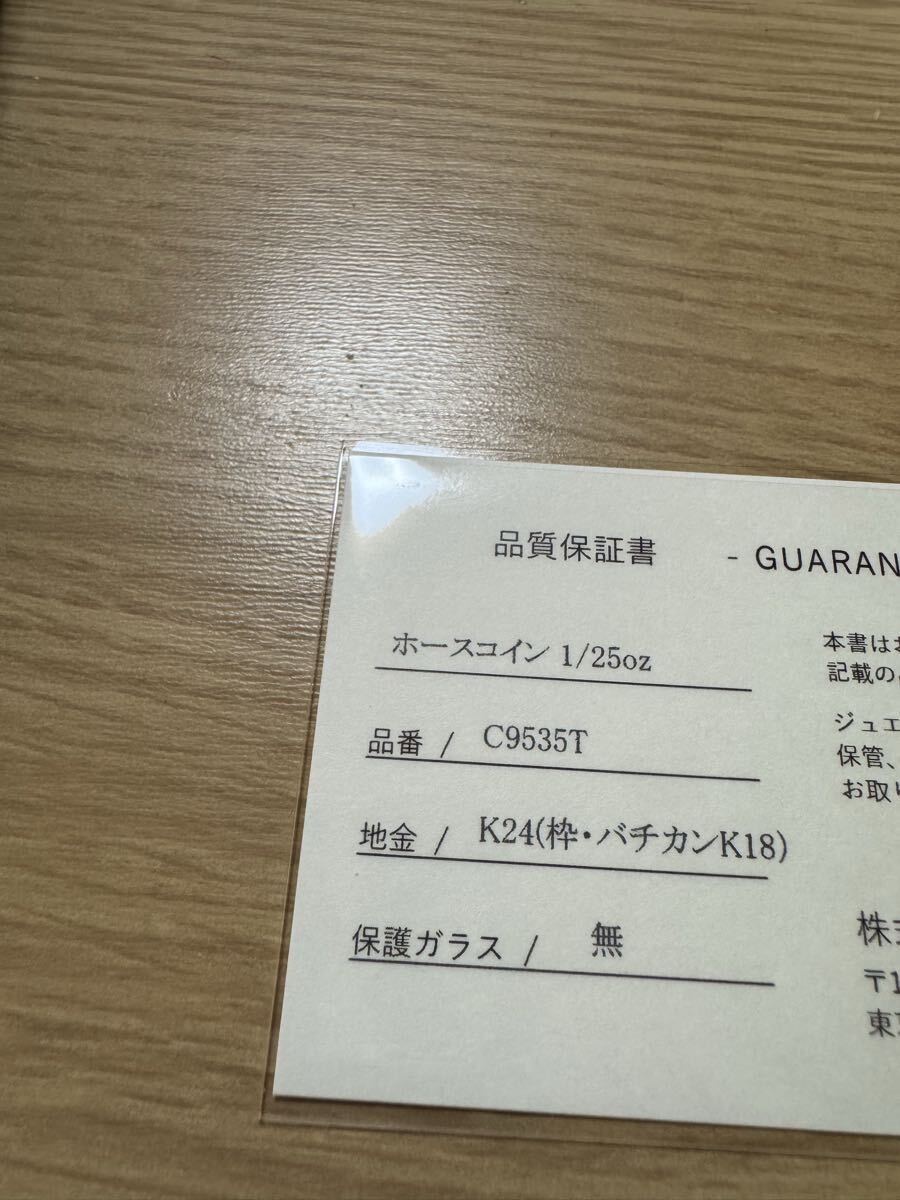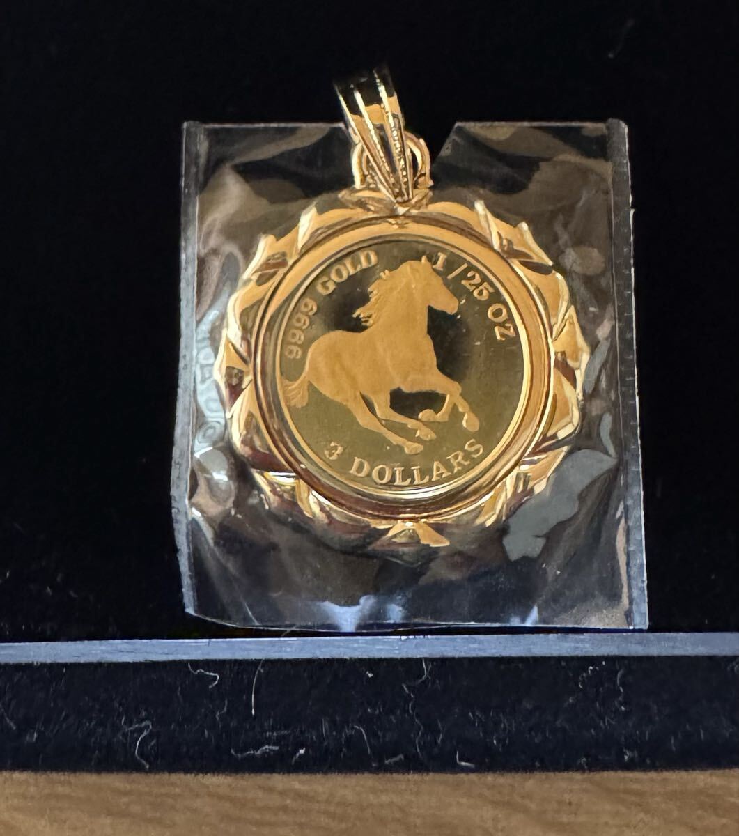 コイン ツバルホース k24 24金 純金 24k ホースコイン 1/25oz 18金枠 k18 18k エリザベス2世 馬 コインペンダント ペンダントトップ