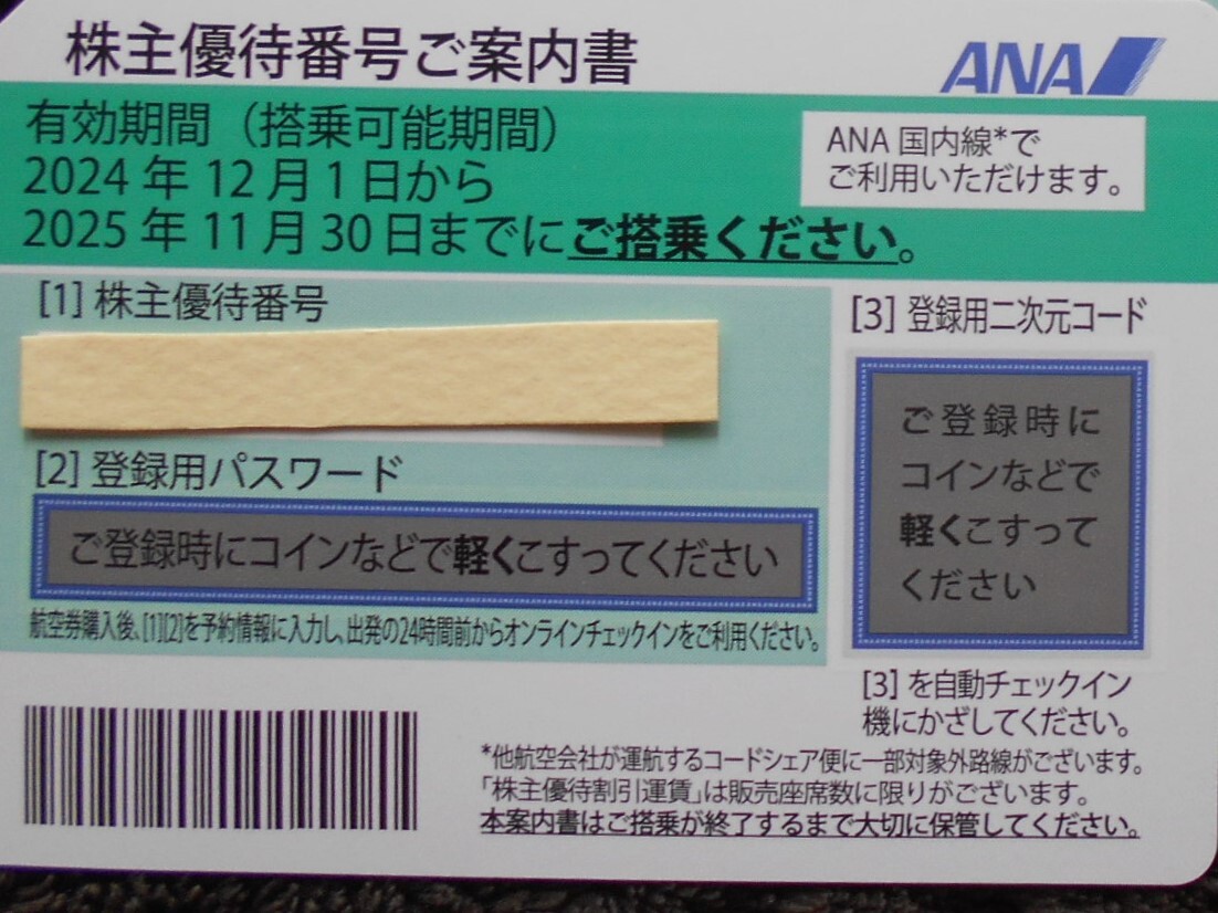 【番号通知のみ】ANA株主優待券1枚 2025.1130までの搭乗まで 【発送無し】