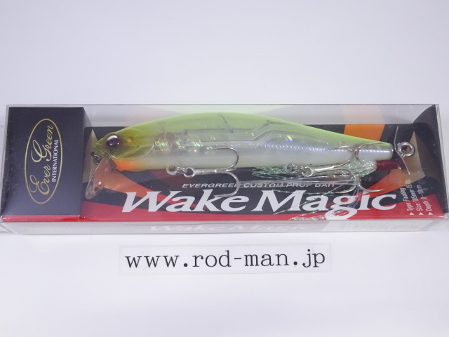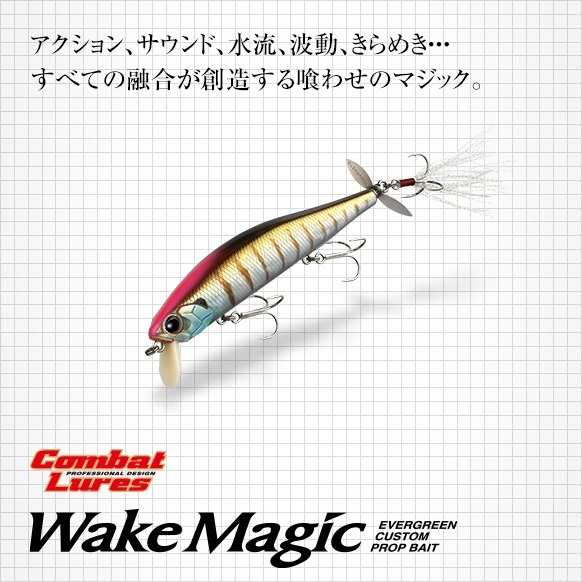 ナチュラルなローリングアクションで引き波を立てて、水面~水面直下を泳ぐウェイクマジック。抜群の飛距離とアクション安定性を両立する2ウエイト・マグネット重心移動システムを搭載し、従来のミノーシェイプ・ウェイクベイトが苦手とする少々波立った水面でも、飛び出さず安定した泳ぎを持続します。