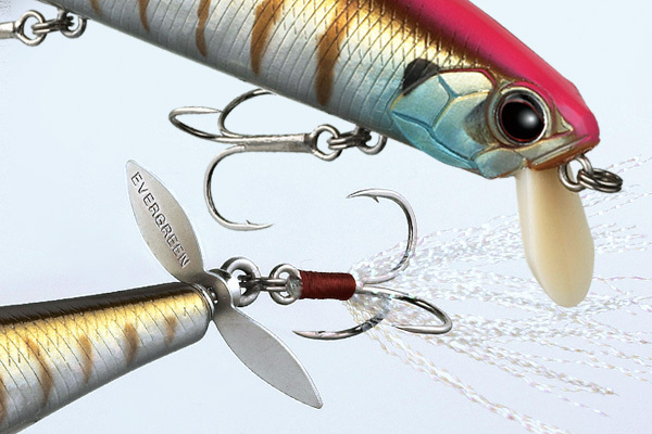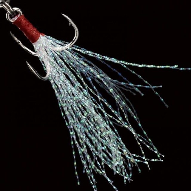 ティンセル付リアフックが、ジョイントミノーのような「くねる」泳ぎを演出し、ナチュラルなきらめきと相まってバスにアピール。引き波の形状を、よりナチュラルにする役割もあわせ持ちます。