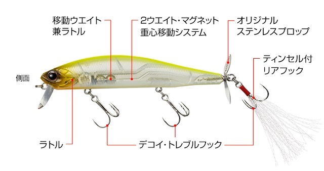 2ウエイト移動ならではの抜群の飛距離と、マグネット固定ウエイトによるアクション安定性を両立。
