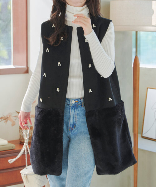 参考商品名:ビジューファー切替ペプラムベスト