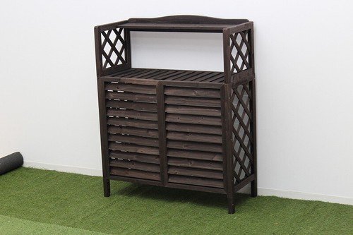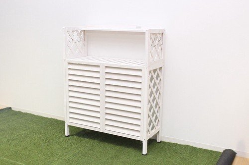 即決可@新品棚付き木製室外機カバー/ホワイト | ||||||||||||