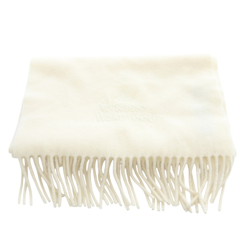 ヴィヴィアンウエストウッド Vivienne Westwood ロゴ 刺繍 ウールマフラー オフホワイト /SR32 ■SH レディース
