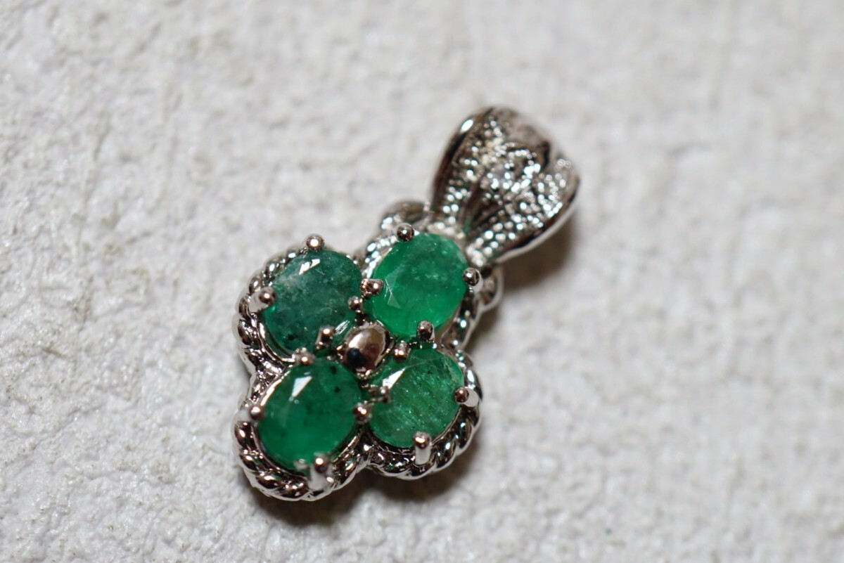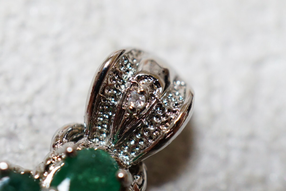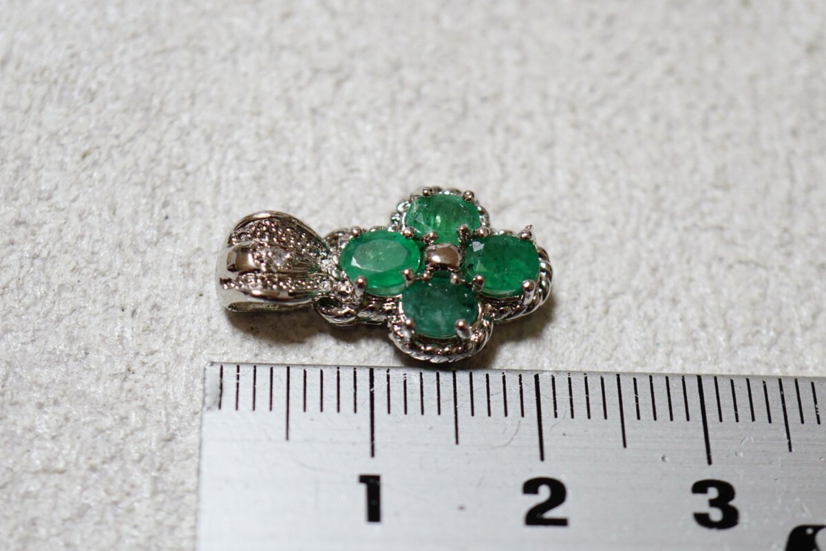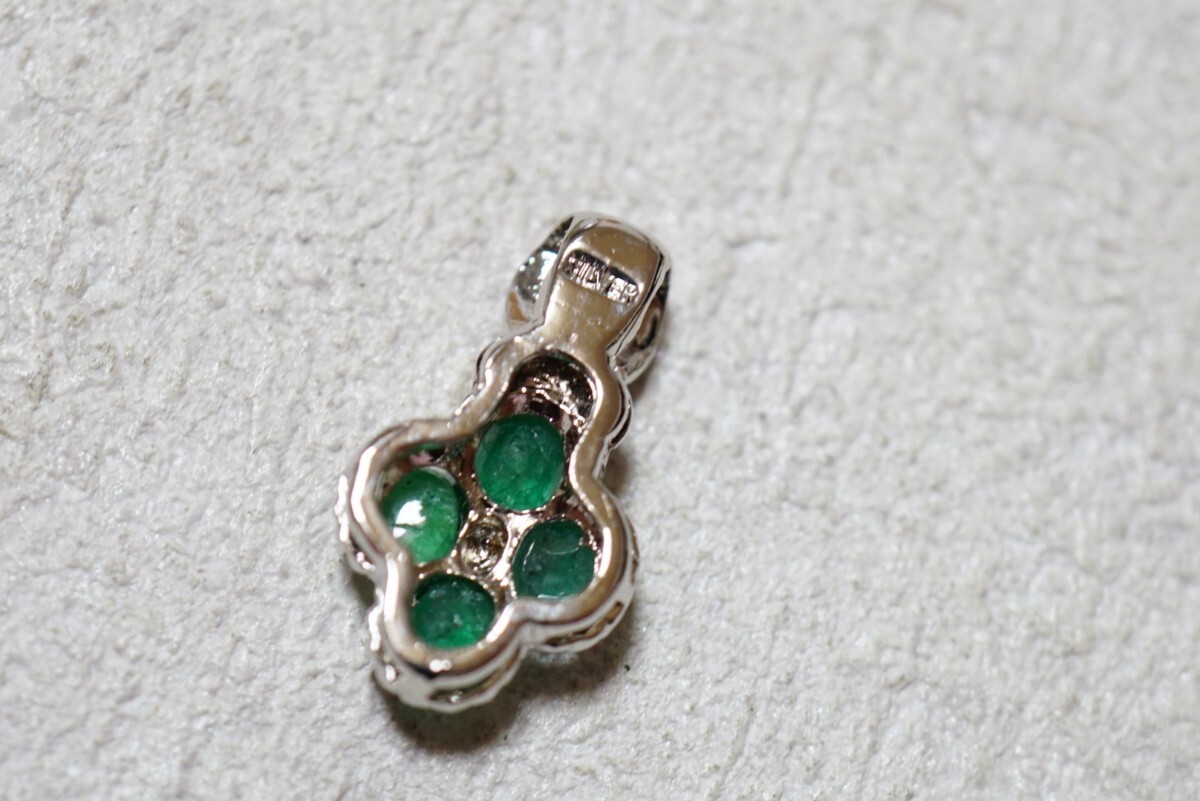 327 天然エメラルド ダイヤモンド ペンダント ネックレス ヴィンテージ アクセサリー SILVER刻印 天然石 宝石 色石 カラーストーン 装飾品