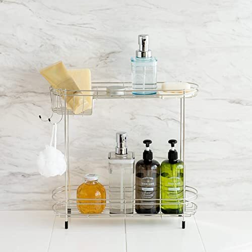 説明 商品紹介 ポンプ式シャンプーボトルをたっぷり収納。 より ●ライフスタイルに合わせた収納で快適空間を演出 ●一日の疲れを癒すバスタイムはゆったりとした空間で過ごしたいもの ●ついつい増えてしまう小物をすっきり使いやすく収納 ●便利な石けん皿付き ●チューブ類が立てて収納できる ●小物が掛けられるフック付き