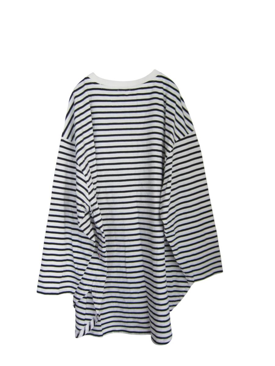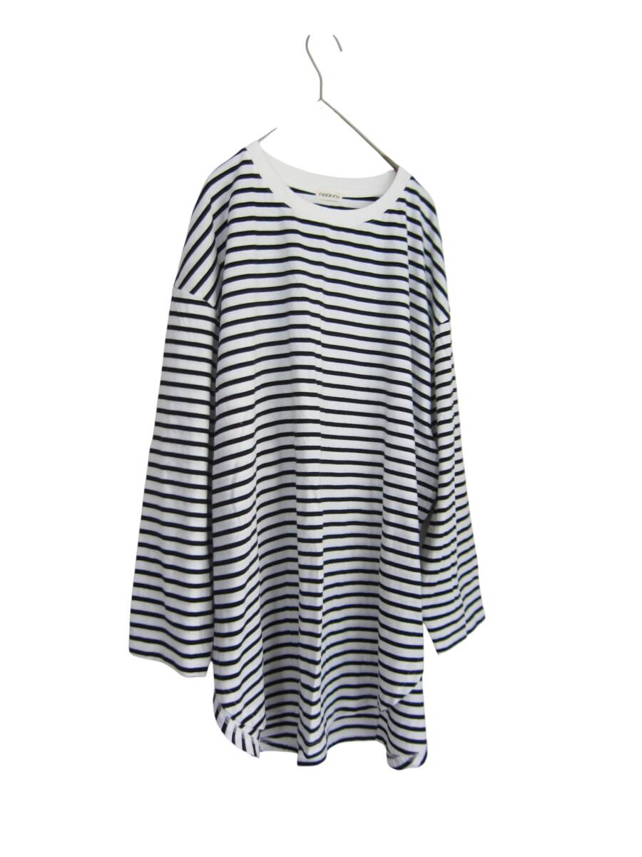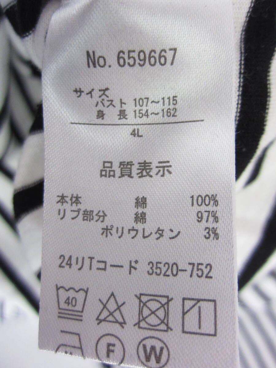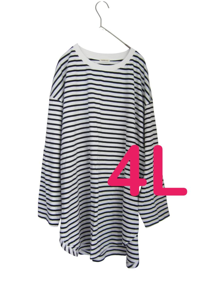★送料無料 M40 美品 【4L】 ~5L着用可 ノアンヌ ブラック ボーダー ゆったり カットソー 綿100% 大きいサイズ 匿名配送
