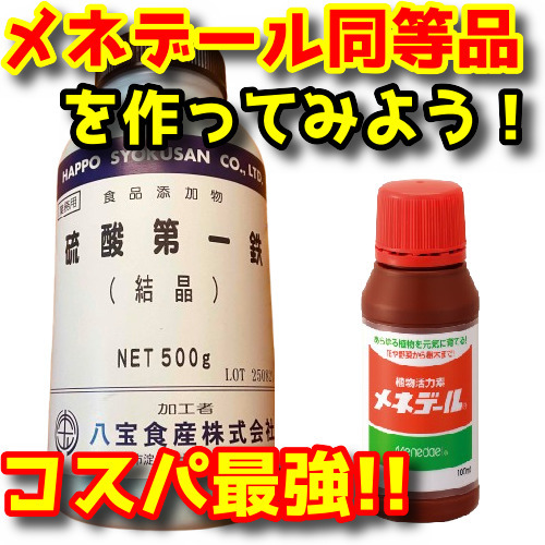 活力剤『メネデール』の効果を実感されている方は多いと思います。私も植物育成において比較実験を行い、良い結果を得ています。(メネデール使用にも実は重要なコツがあります。)