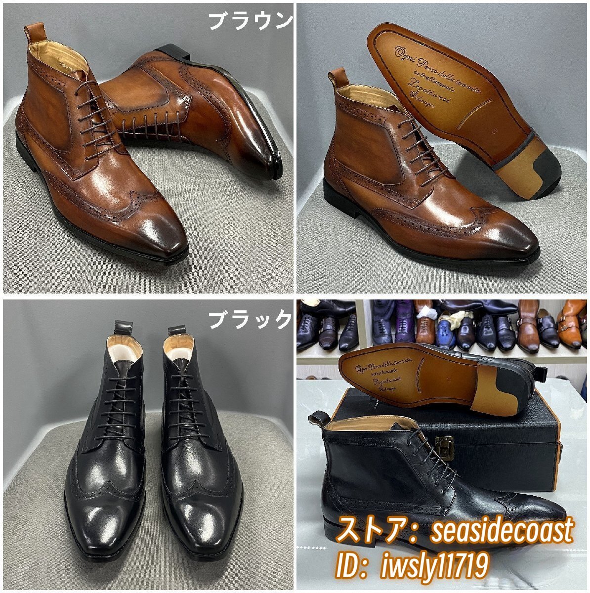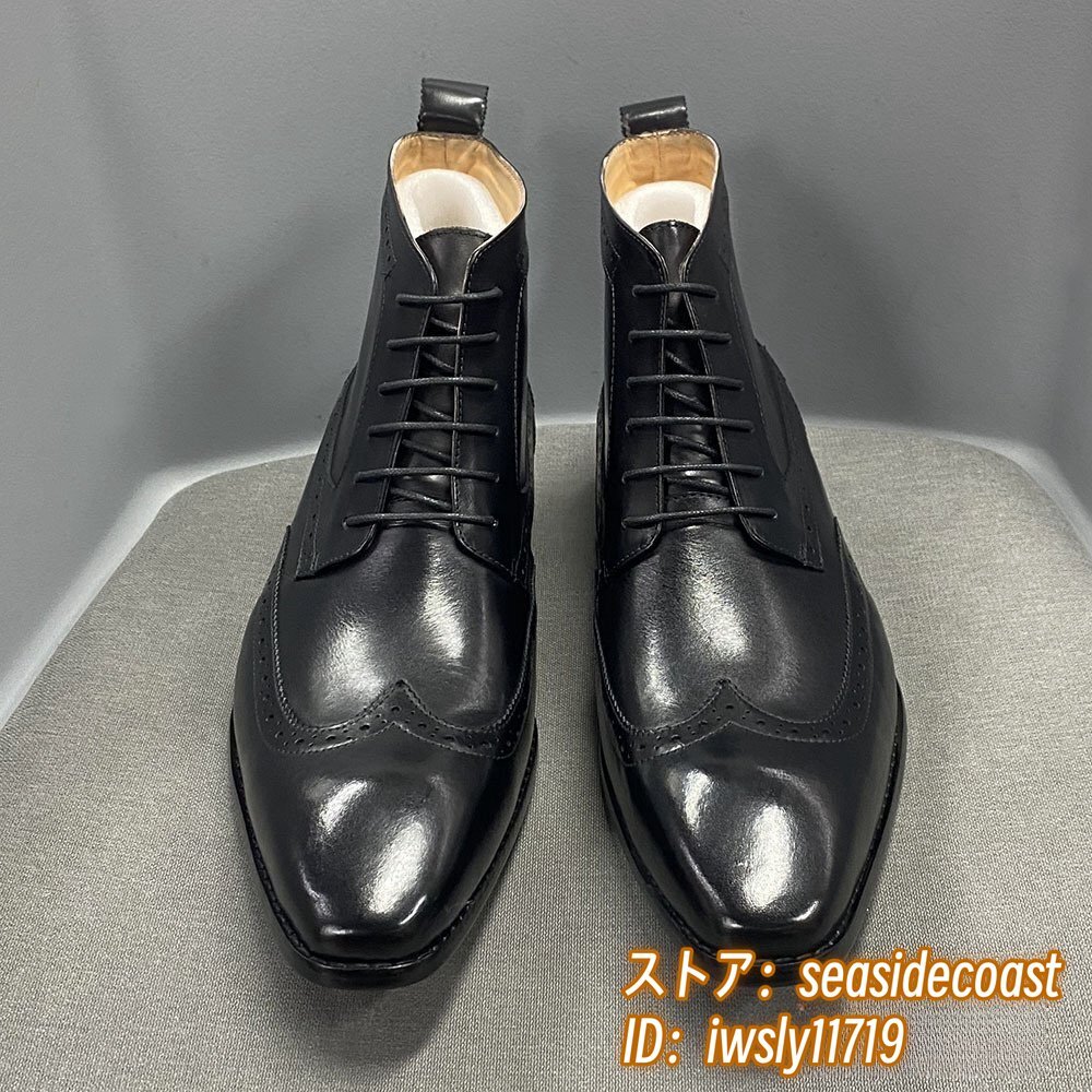 定価12万 新品 レザーブーツ 最高級メンズブーツ ショートブーツ 牛革 マーティンブーツ 本革エンジニアブーツ 職人手作り ブラック 27.5cm