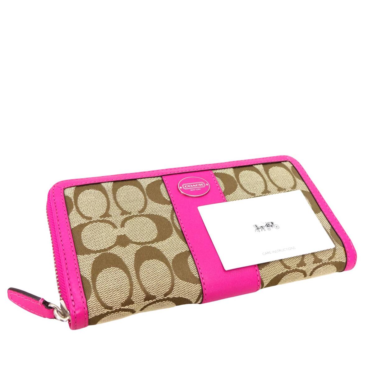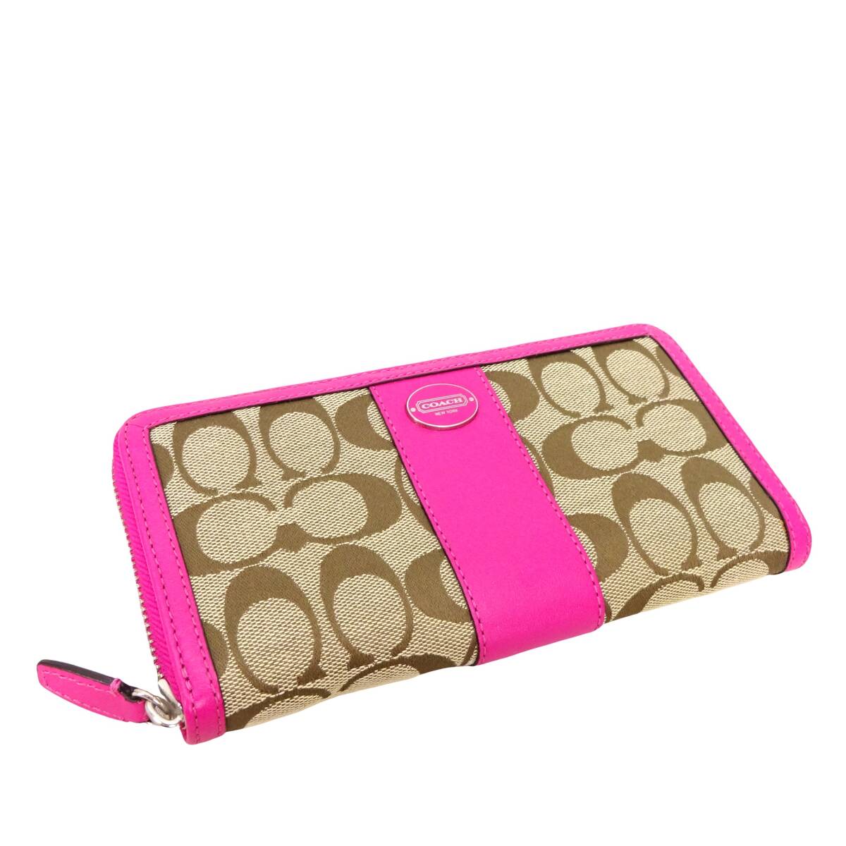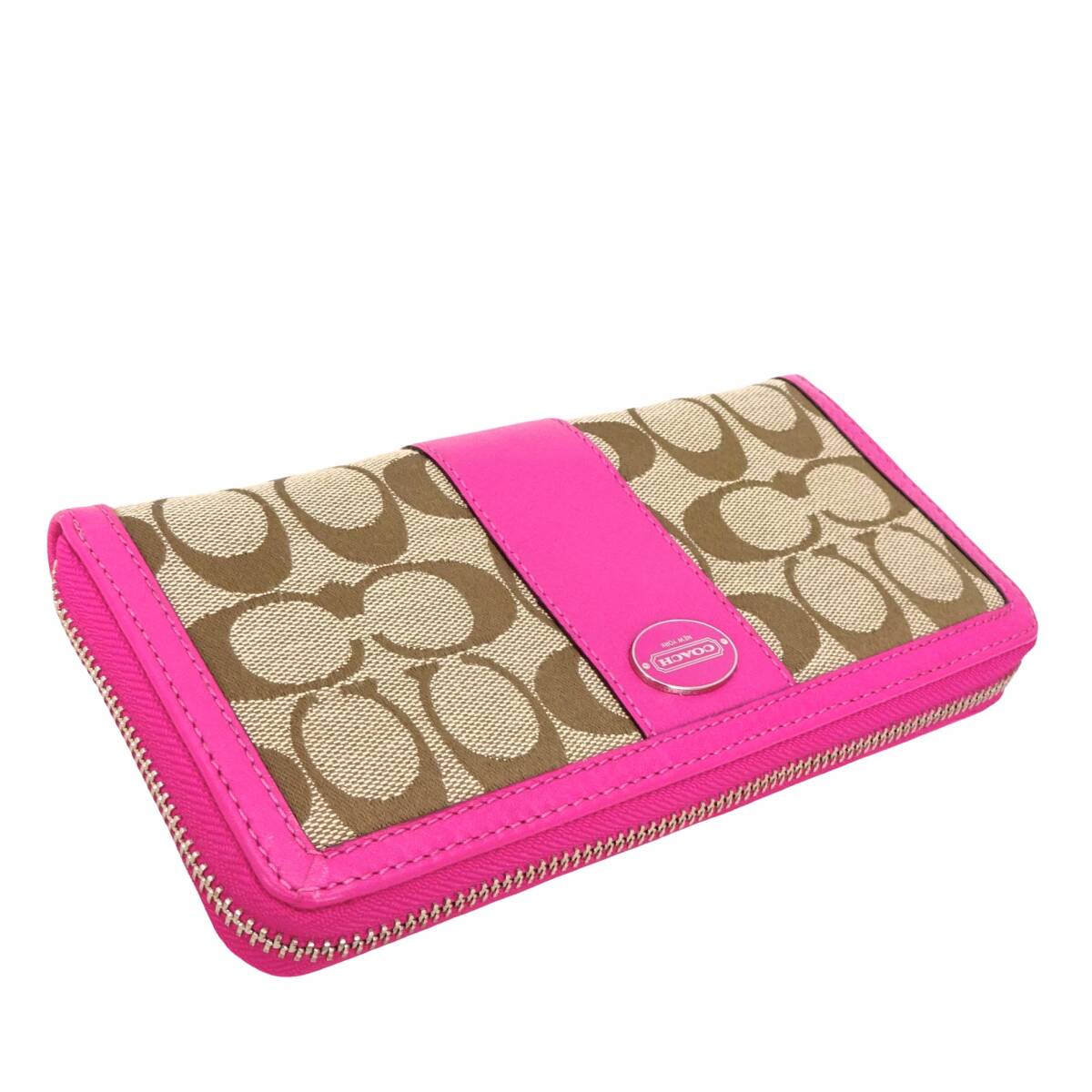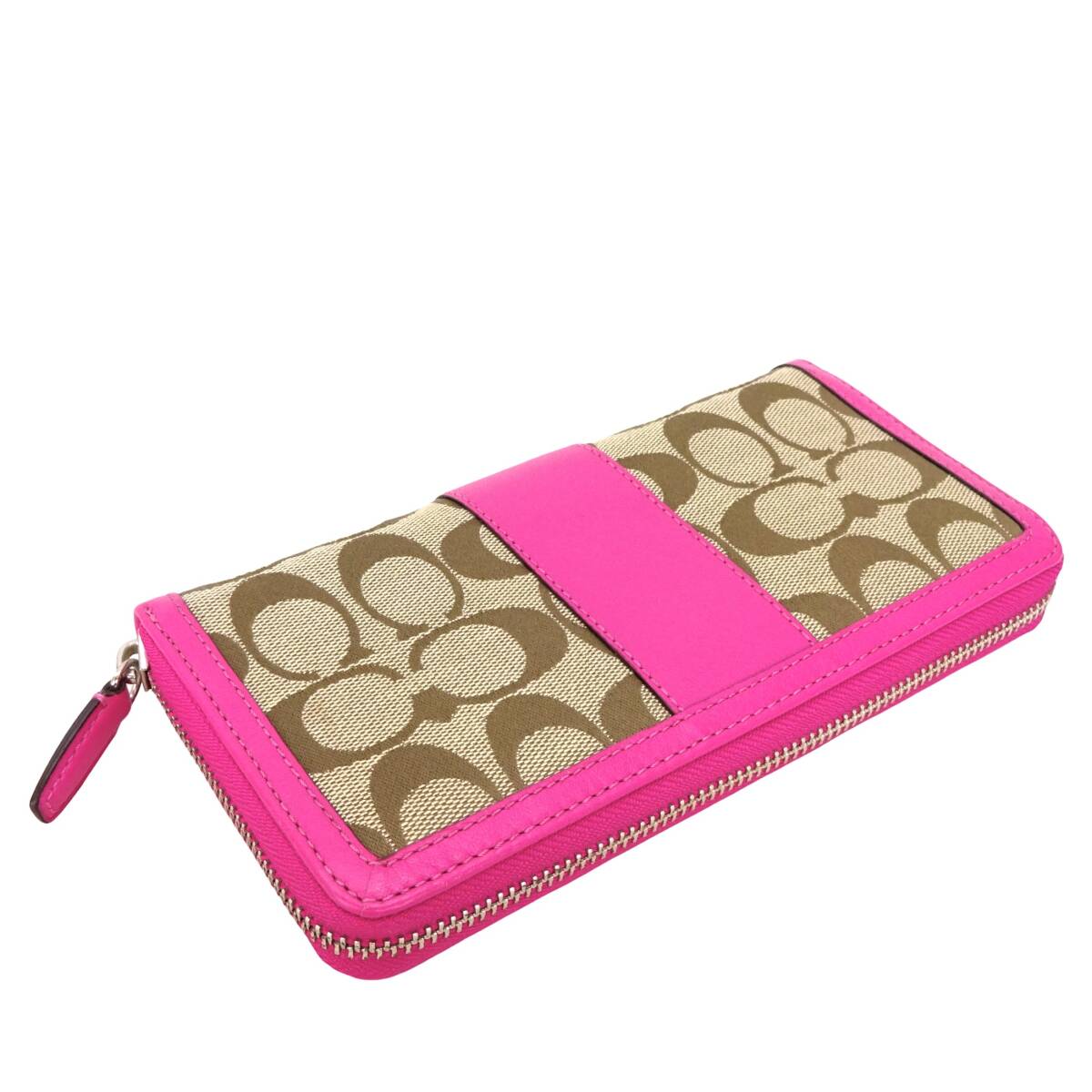本物 未使用■コーチ■シグネチャー アコーディオンジップ ベージュ ピンク ラウンドファスナー長財布 /92235