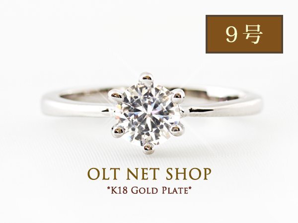 9号 / 新品 指輪 K18GP 一粒 リング レディース シルバー 18金 ホワイトゴールド ダイヤ CZ シンプル 人差し指 中指 薬指 プレゼント 女性