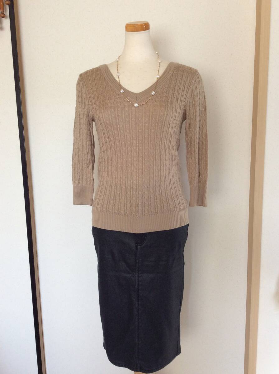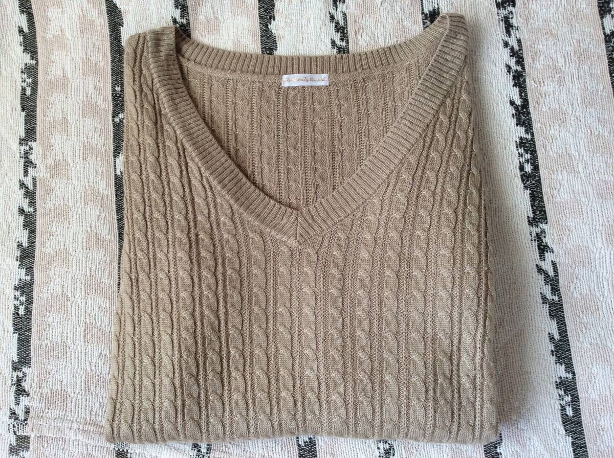 即決 ドゥファミリィ カシミヤ混ケーブル編みニット キャメル系カラー 日本製 レターパックライト込 10月2日初出品