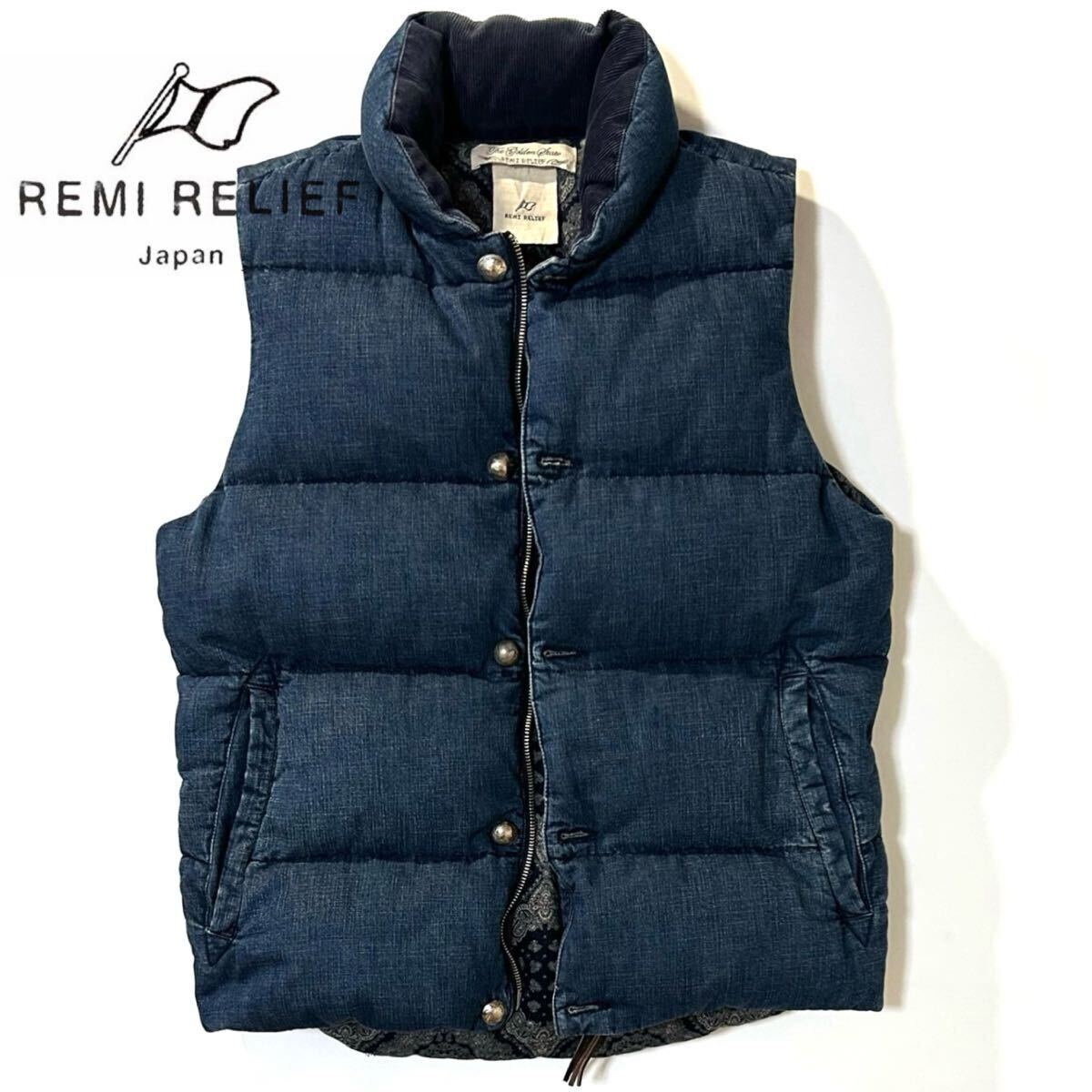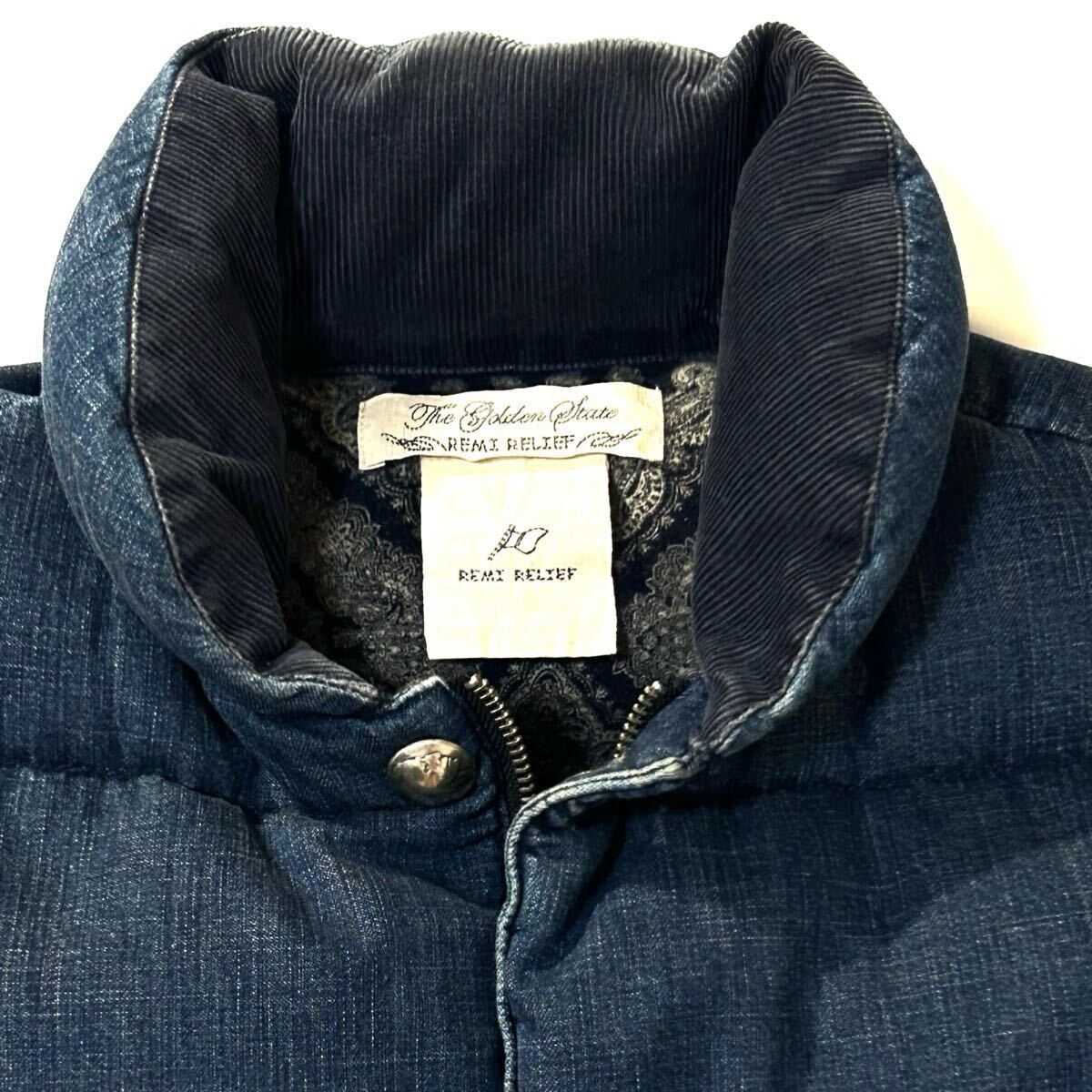 古き良きアメリカ衣料を徹底したヴィンテージワークで再現するレミレリーフから、職人による手作業で丁寧に施したデニムの加工感が、自然と経年変化したような味わい深い表情を作り上げたコンチョデニムダウンベストです。
