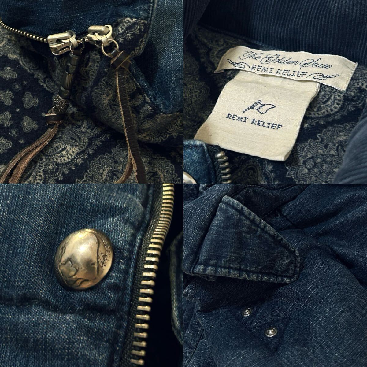 ヴィンテージな風合いを演出したインディゴ染めのデニム生地に、重厚感のあるコンチョ釦やレザーコードを用いたジップスライダーなど、レミレリーフオリジナルのオーナメントを添えたアメカジ感たっぷりなアイテム!
