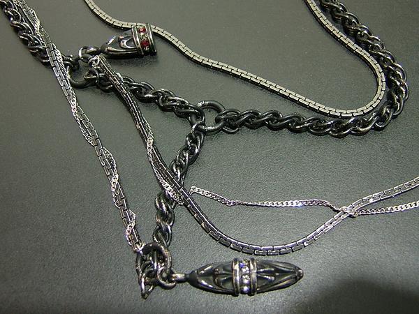■異なる4種4本のチェーンで武装 ラインストーンぐるっと一回りに10個付きのヘッドが1付き またぐるっとひと回りにラインストーン5個+赤ストーン5個のヘッドが1付き