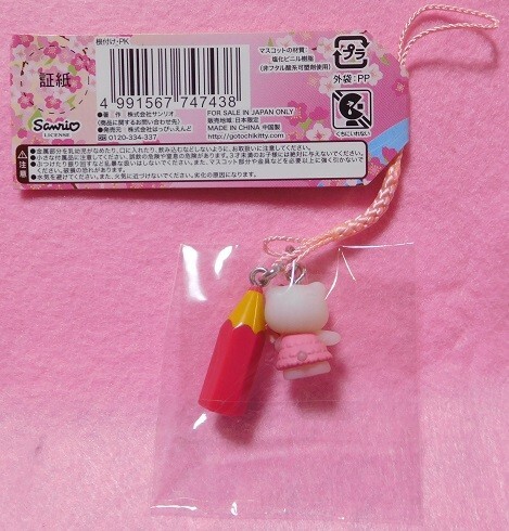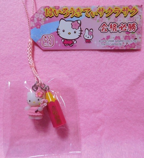 ☆レア☆2008☆はいろうきてぃサクラサク 合格必勝(ピンク色)バージョン ハローキティ根付け☆ストラップ☆