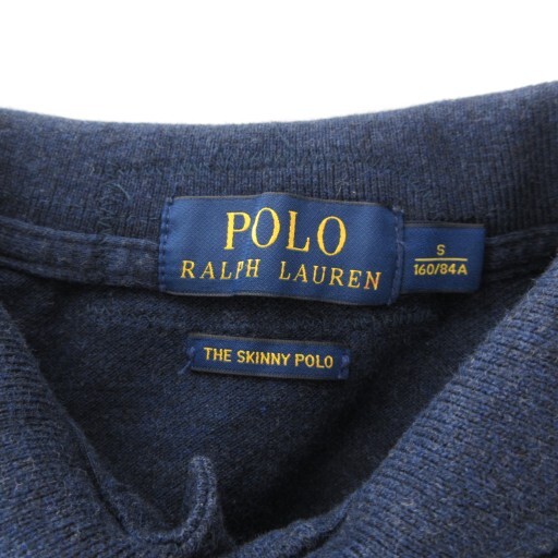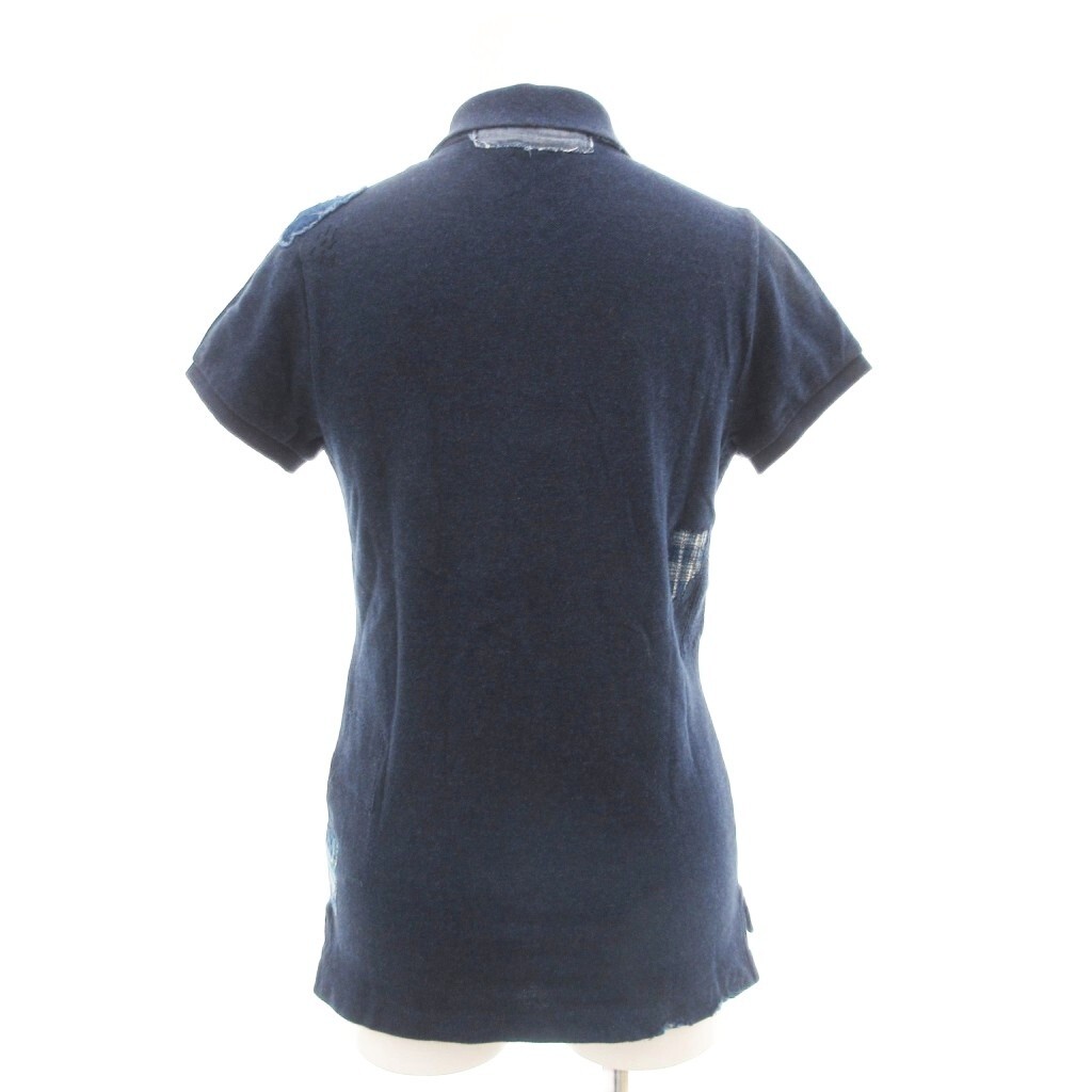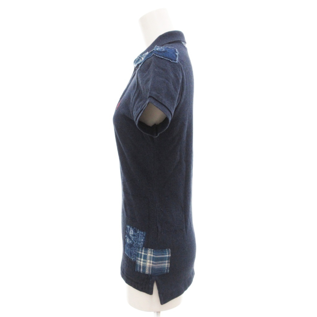 ポロ ラルフローレン POLO RALPH LAUREN THE SKINNY POLO ポロシャツ 半袖 S 紺 ネイビー 鹿の子 刺し子 パッチワーク